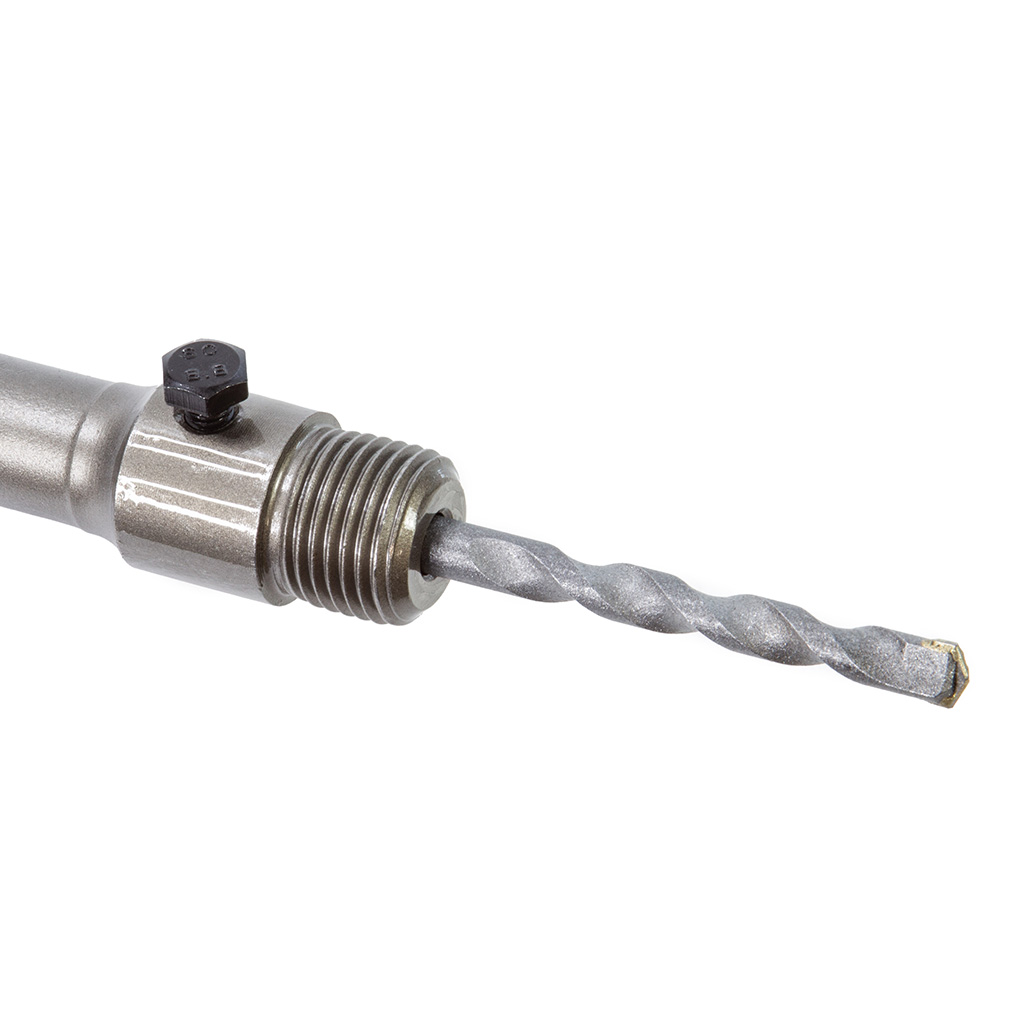Adaptér SDS Max 350 mm se závitem M22 × 2 mm a vodícím vrtákem. Vysoce odolné zpracování s tvrdostí pracovní části 58–60 HRC. Vhodný pro použití s korunovými vrtáky. Mar-Pol M22603
