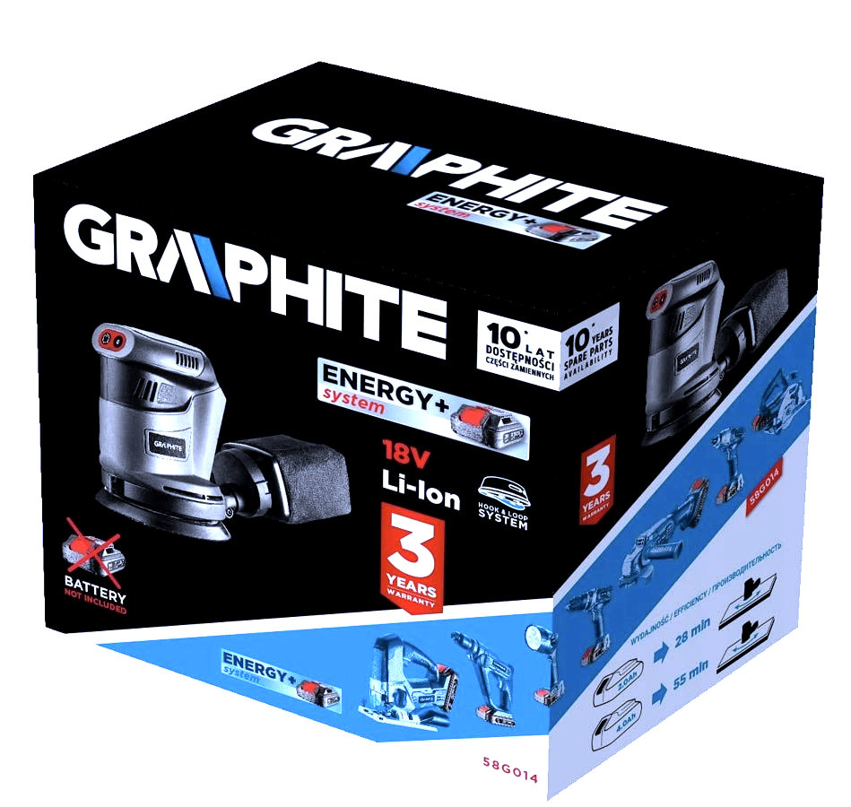 Excentrická bruska GRAPHITE, spolupracuje s akumulátory 18 V Li-Ion GRAPHITE Energy+. Bruska má kotouč o průměru 125 mm s možností upevňování brusného papíru na suchý zip. Zařízení pracuje ve třech různých rychlostech otáčení: 5000/7000/9000 min⁻¹, kterým odpovídají frekvence kmitání: 10000/14000/18000 min⁻¹. Amplituda kmitů je 2,7 mm. Místo uchopení je pokryto protiskluzovým materiálem, díky čemuž lze s elektrickým nářadím pracovat bezpečně a pohodlně i jednou rukou. Bruska má výkonný systém odvádění prachu, díky kterému odpad vznikající během broušení neztěžuje práci. V sadě s bruskou se nacházejí: sáček s filtrem pro shromažďování prachu a brusný papír. 12px; background-color: rgb(255, 255, 255);">Akumulátorová excentrická bruska 18 V, patka 125 mm, otáčky 5000/7000/9000 min⁻¹, kmitání 10000 amplituda kmitů 2,7 mm, (LxH) 165 x 145 mm, hmotnost 1,1 kg, kompatibilní s akumulátory Energy+, příslušenství: brusný papír, sáček na prach.