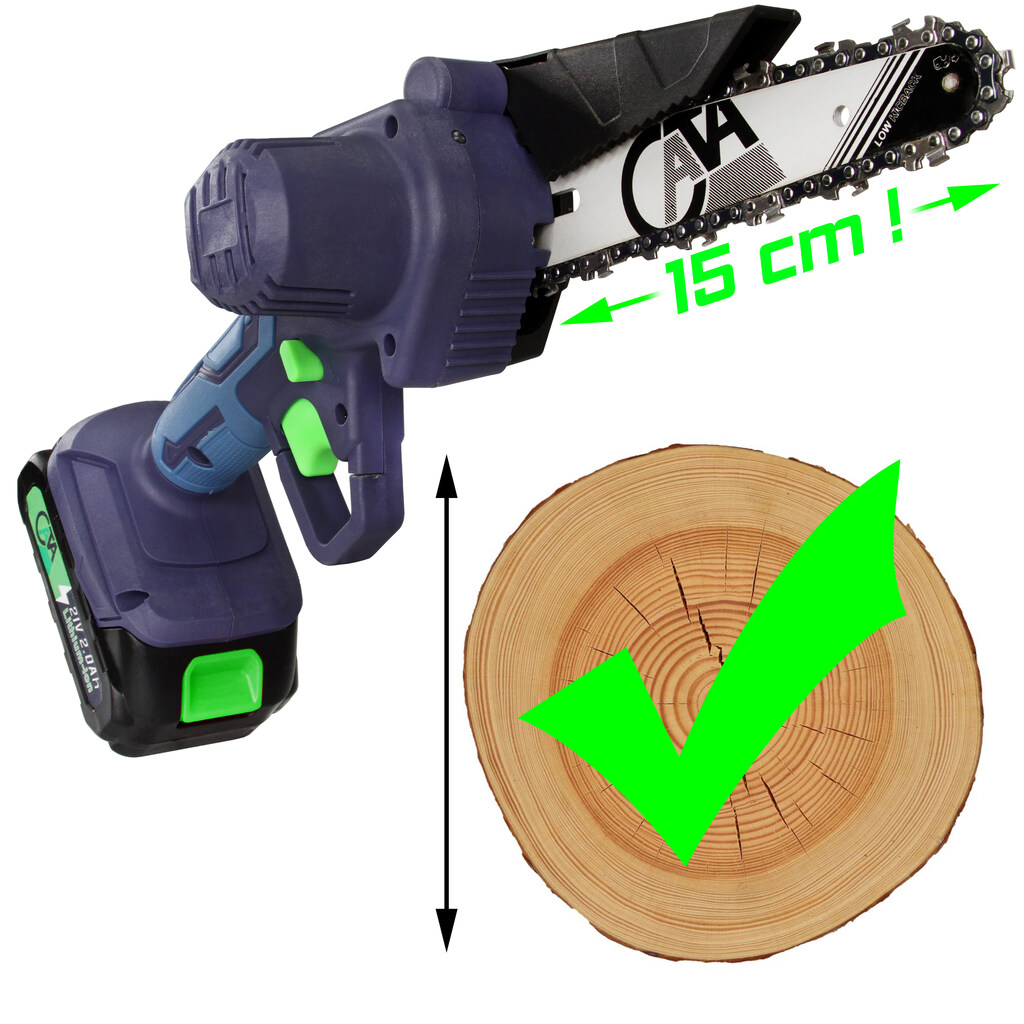Kompaktná a výkonná aku píla CATA je ideálnym pomocníkom pre práce v záhrade, okolo domu alebo na chate. Vďaka nízkej hmotnosti, vysokootáčkovému motoru a ostrému reťazu z tvrdených zliatin si ľahko poradí s prerezávaním konárov, menších stromov, dosiek, líšt či iných drevených prvkov.