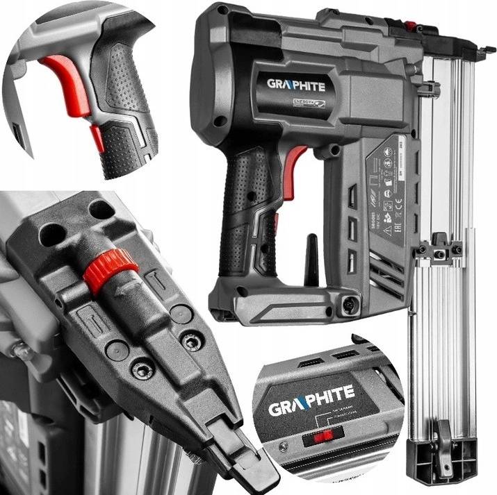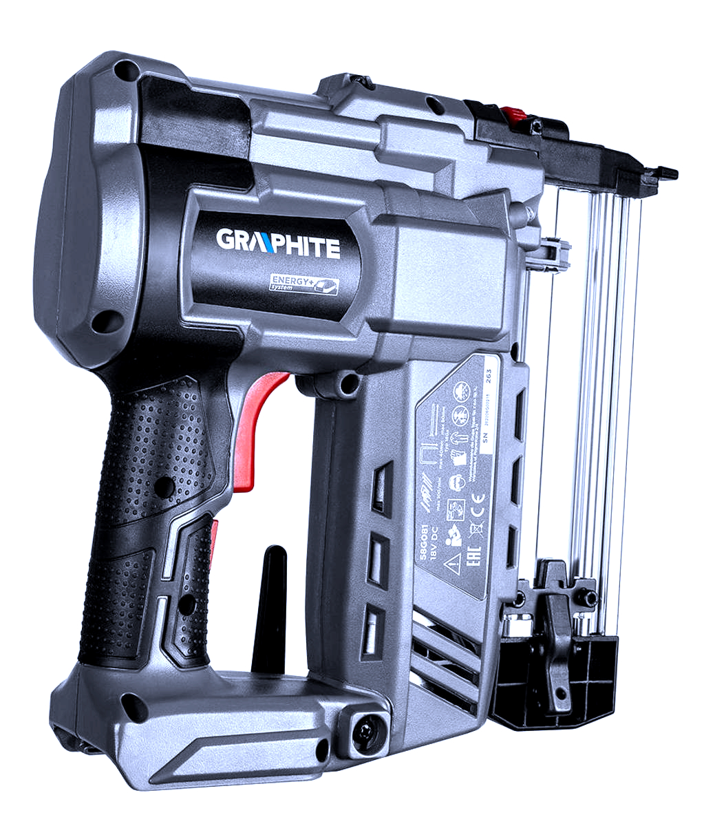 Aku sponkovačka a hřebíkovačka 58G081 2v1 GRAPHITE Energy + 18V, Li-Ion, bez baterie, je zařízení spojující funkce sešívačky a hřebíkovačky.