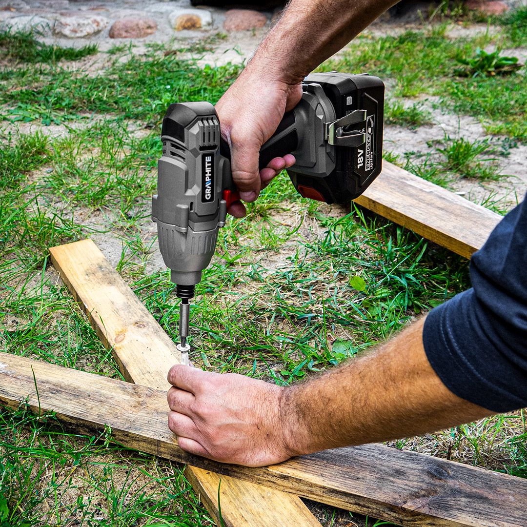 Nářadí je určeno ke šroubování a odstraňování šroubů ze dřeva, kovu a plastů. Umožňuje pracovat při vysokých rychlostech (až 2200 ot./min) a poskytuje vysoký točivý moment (180 Nm). Točivý moment se vytváří ve formě okamžitého periferního nárazu, který pomáhá minimalizovat náraz přístroje na ruku během šroubování. Držák na bit 6,35 mm (1/4") je navržen tak, aby pracoval s nejpopulárnějšími typy šroubováků. Přístroj je vybaven elektromotorovou brzdou, která umožňuje rychlé zastavení vřetena. Je vybaven LED světlem, které osvětluje pracoviště. Ergonomický tvar protiskluzové rukojeti a optimalizovaná celková délka. utahovák, je také vybaven kovovou sponou na opasek. Akumulátorový rázový utahovák 18 V, Li-Ion, otáčky 0-2200 min, vpravo/vlevo, kroutící moment 180 Nm, sklíčidlo 6, sklíčidlo 6 vřetena, (LxH) 185 x 225 mm, hmotnost 1,2 kg, kompatibilní s akumulátory Energy+, (Baterie ani nabíječka nejsou součástí balení)