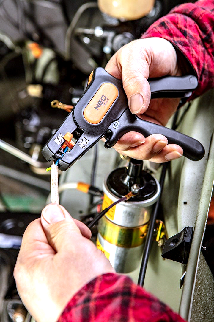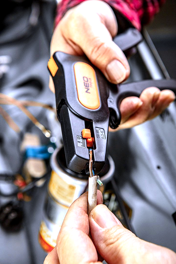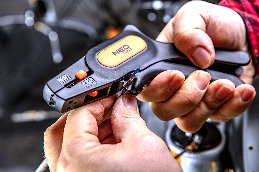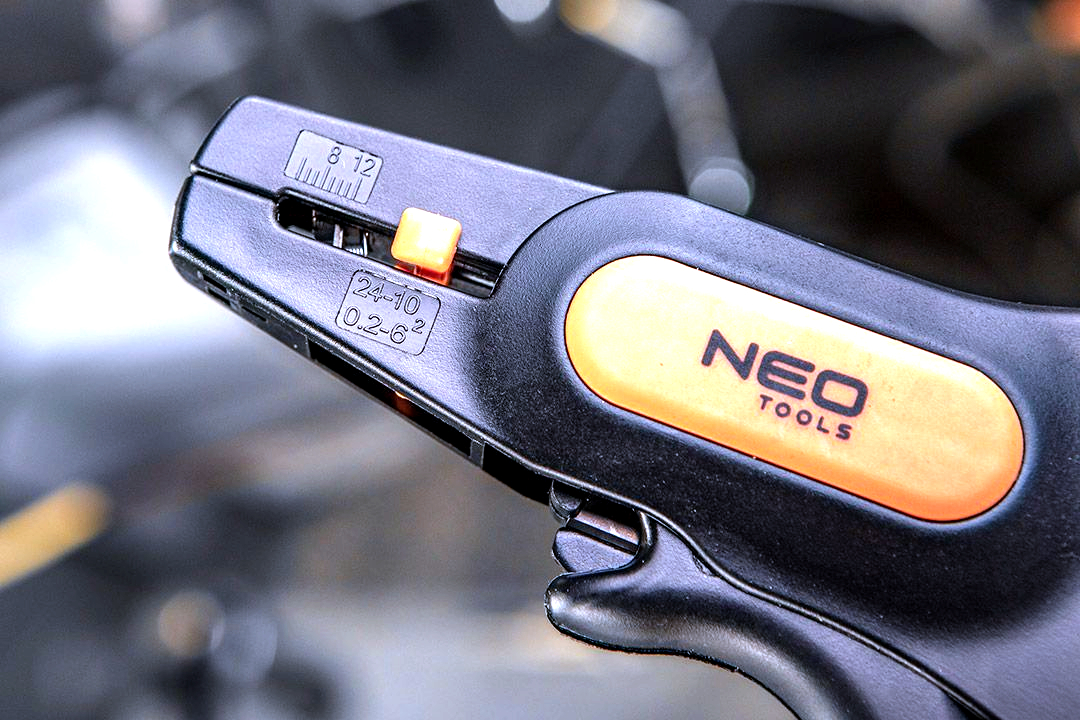 Automatické odizolovací kleště NEO Tools 01-519 – Vysoce kvalitní kleště s nastavitelnou délkou pro odizolování drátů, vyrobené z oceli SK5, s řezačkou drátu a odolným tělesem.