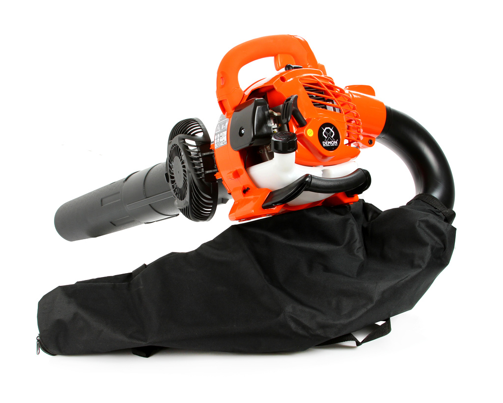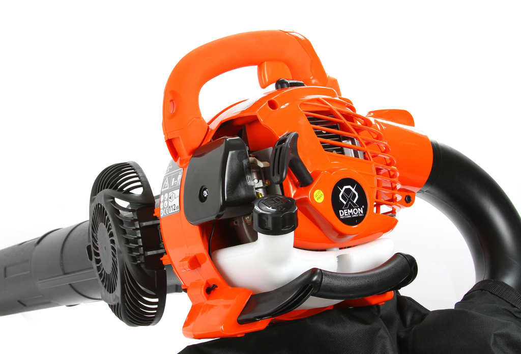 Benzínový fukar Demon 3v1 s funkcí vysávání a drcení listí. Výkonný 2-taktní motor 25,4 cm³, kovový drtič se 4 břity, nízká hmotnost a ergonomický design. Ideální na úklid zahrady, dvora i odfukování sněhu.