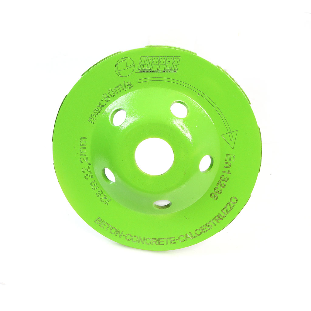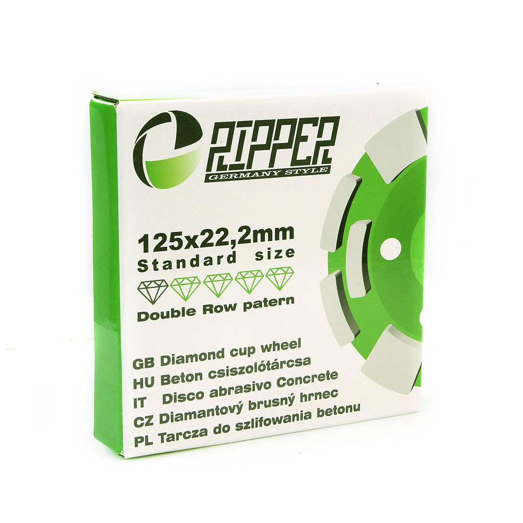 Profesionální diamantový kotouč s dvojitou řadou segmentů (DOUBLE ROW) určený pro hrubé broušení betonu, cihel a dlažby. Průměr 125 mm, otvor 22,2 mm, výška diamantu 5 mm, výborná životnost a univerzální použití pro úhlové brusky.