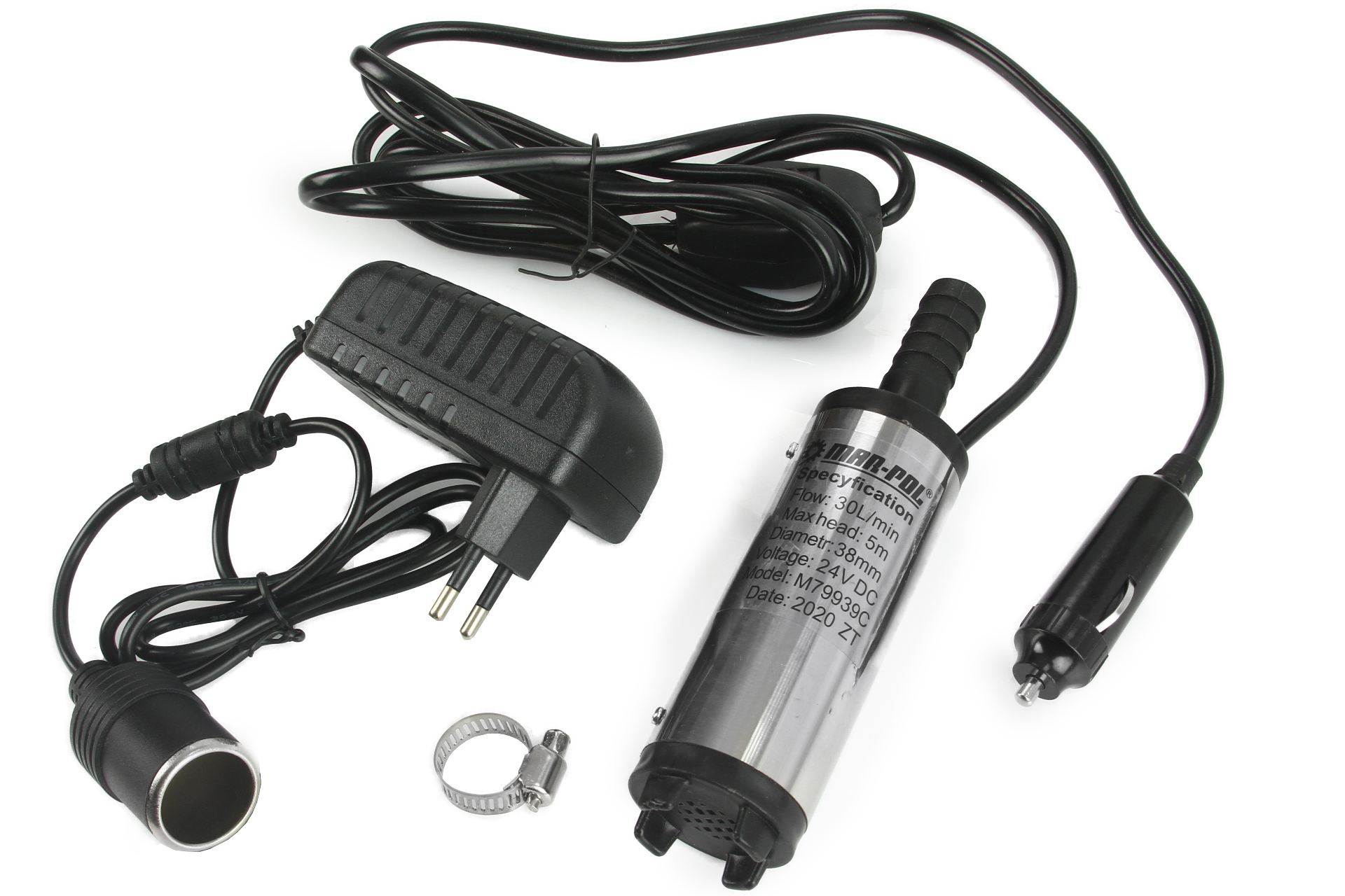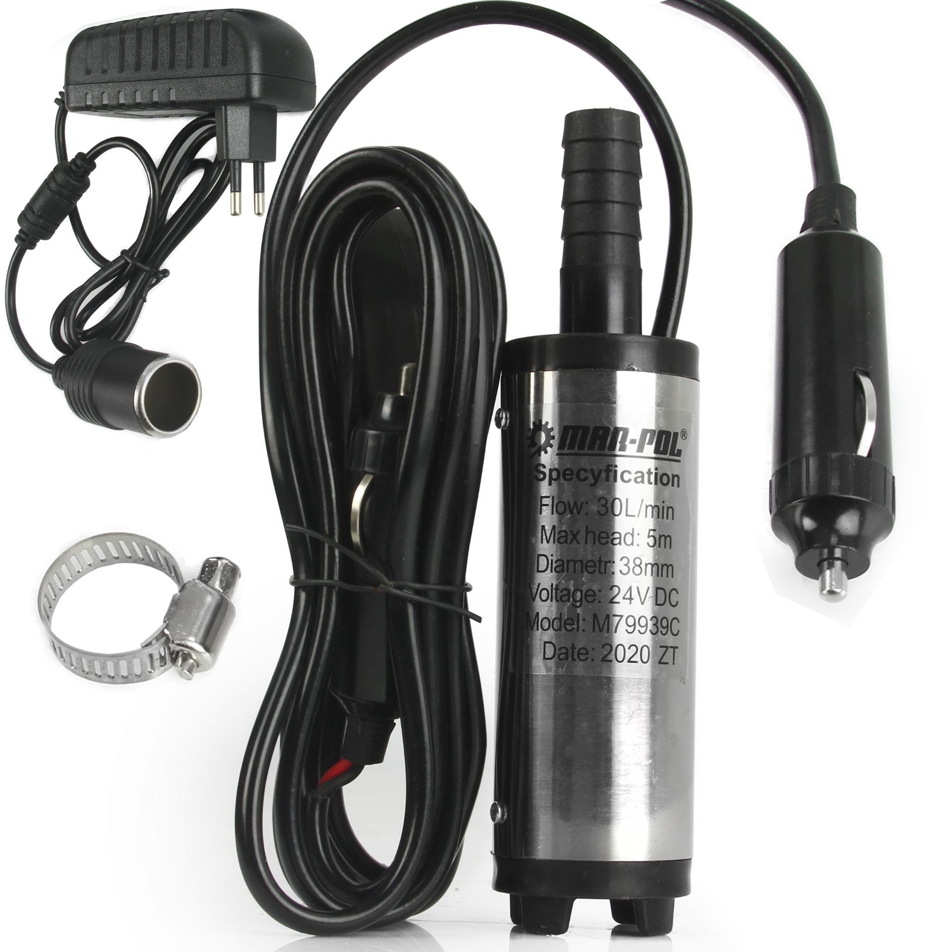 Čerpadlo na naftu 24V - 38 mm + napájení přes auto-zásuvku + adaptér 230V MAR-POL M79939C