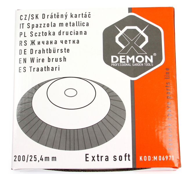 Čistící drátěný kotouč MAR-POL M06971, průměr 200 mm, otvor 25.4 mm, odolný ocelový kotouč pro čištění dlažeb, kovů a odstranění plevele, vhodný pro křovinořezy.