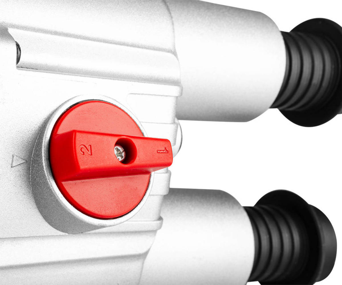 Zařízení disponuje správně tvarovanou protiskluzovou rukojetí pro pohodlnou a bezpečnou práci i při delším používání. Pro maximální bezpečnost je vybaveno zámkem, který zabraňuje náhodnému spuštění. Tělo převodovky je vyrobeno z hliníkové slitiny odolné vůči vysokým teplotám.