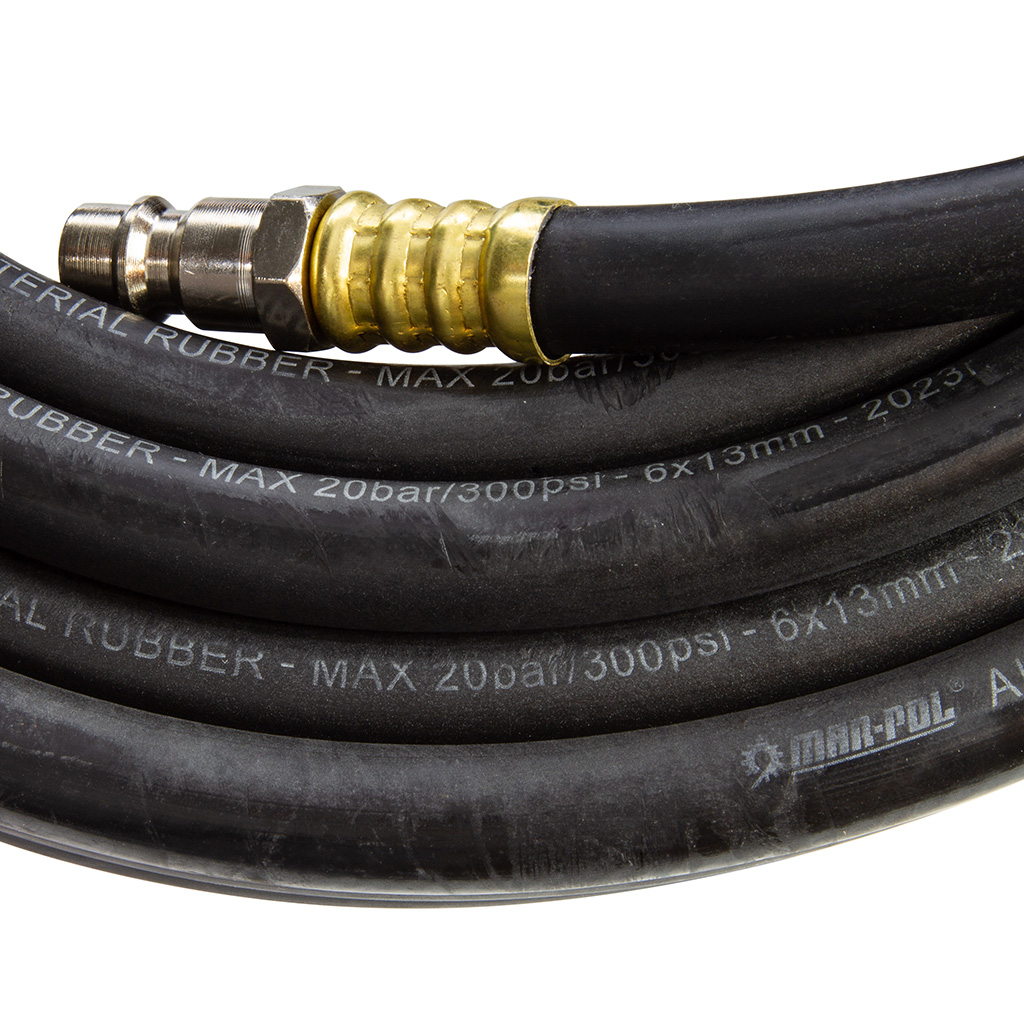 • Gumová vzduchová hadice s rychlospojkami, 6 mm × 13 mm × 10 m – MAR-POL M82101