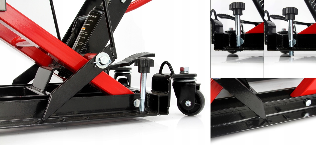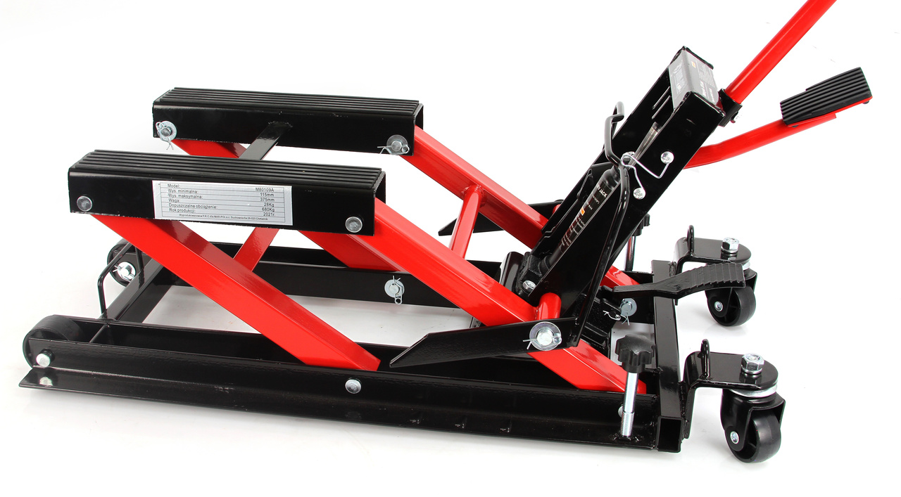 Hydraulický zvedák MAR-POL M80109A s nosností 680 kg je určen ke zvedání motocyklů a čtyřkolek (ATV). Zesílená konstrukce, protiskluzové podpěry a nožní pedály umožňují bezpečné, pohodlné a efektivní zvedání při údržbě a opravách vozidel.