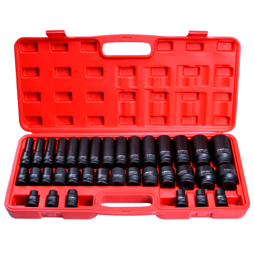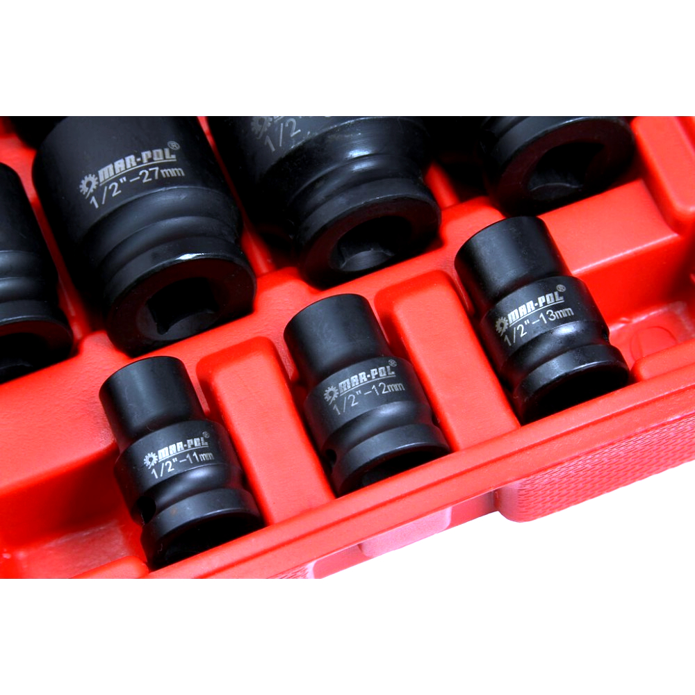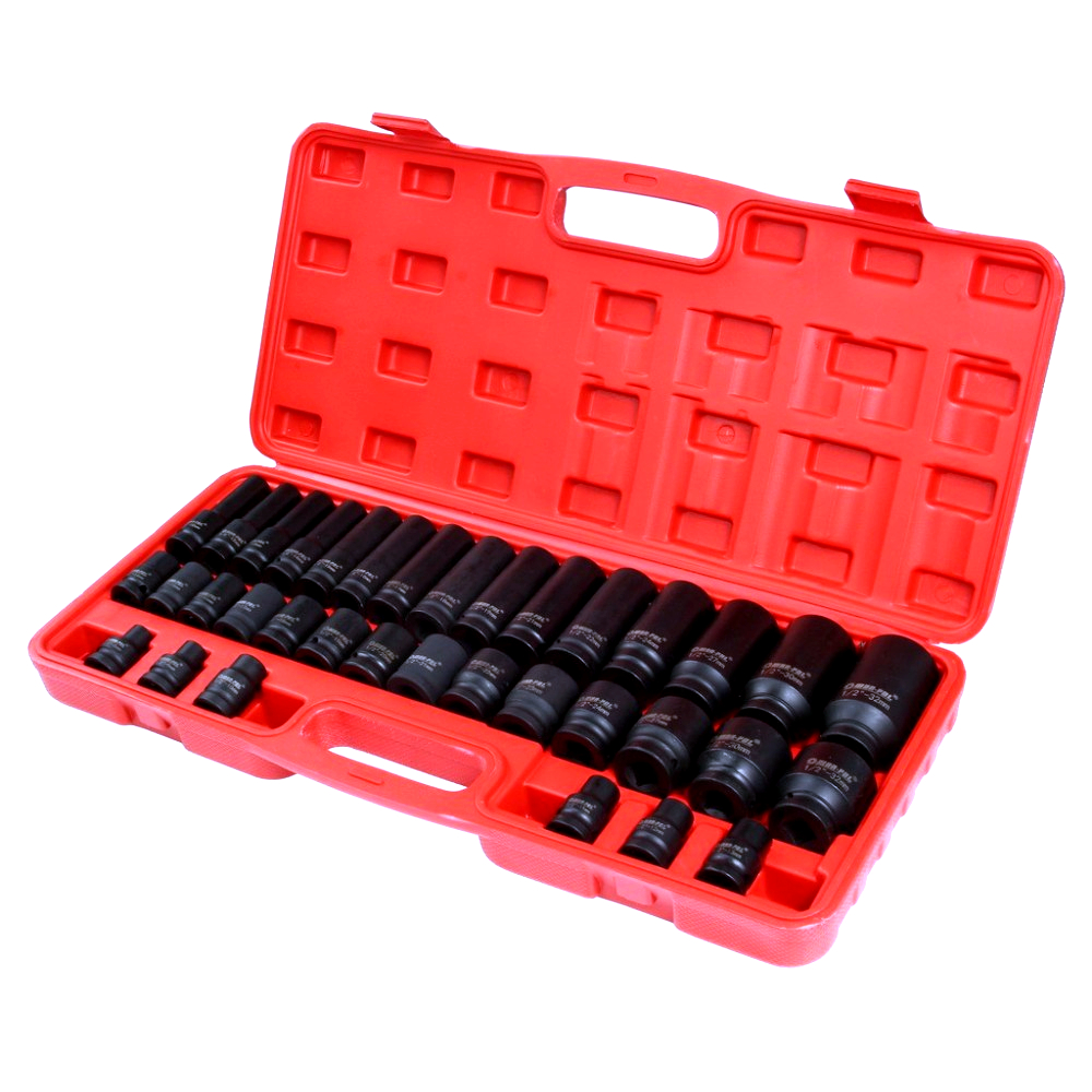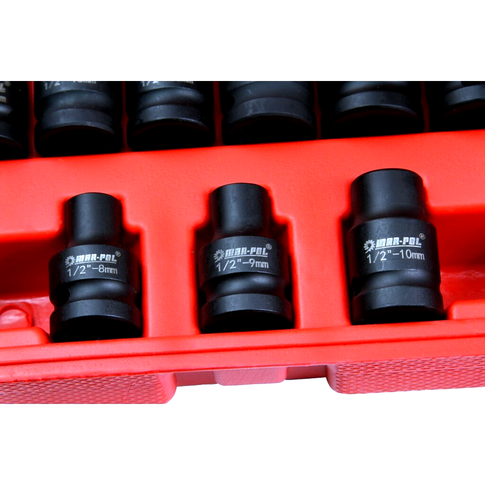 Profesionální 35dílná sada kovaných šestihranných rázových hlavic s uchycením 1/2" je určena pro náročné práce v autodílnách, servisech i domácích garážích. Hlavice jsou kompatibilní s pneumatickými i elektrickými rázovými utahováky a jsou vhodné pro běžné i intenzivní použití.