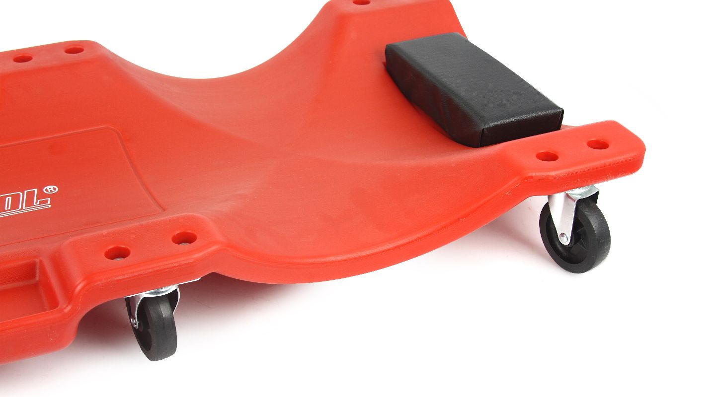 Táto dielenská pohovka je nepostradateľným pomocníkom v každej dielni. Je navrhnutá tak, aby poskytovala pohodlie, praktickosť a ľahkú manipuláciu. Bočné kapsy na nástroje uľahčujú organizáciu, zatiaľ čo 6 otočných kolečiek umožňuje jednoduchý pohyb po dielni. V horní části byla umístěna měkká opěrka hlavy pro lepší pracovní komfort. Vozík je vybaven šesti 360-stupňovými otočnými kolečky s kuličkovými ložisky pro snadný pohyb během práce.