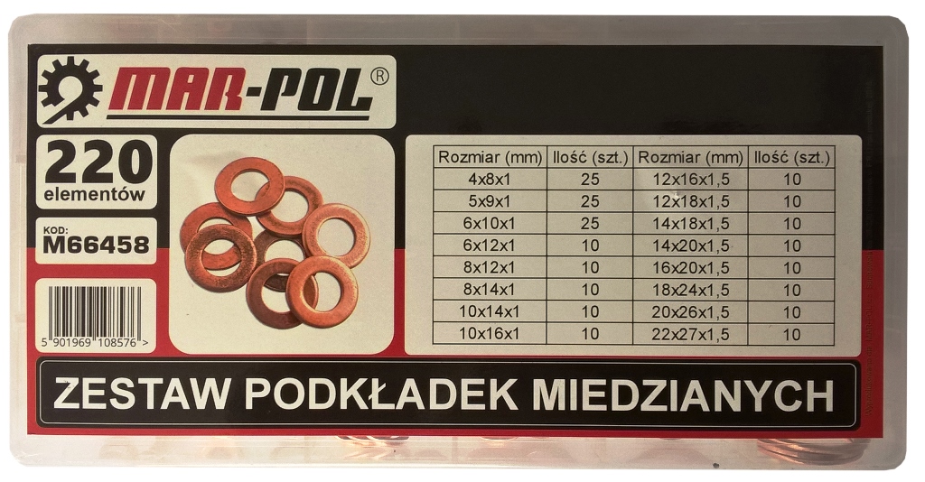 🧰 Sada měděných těsnicích podložek 220 ks – MAR-POL M66458
