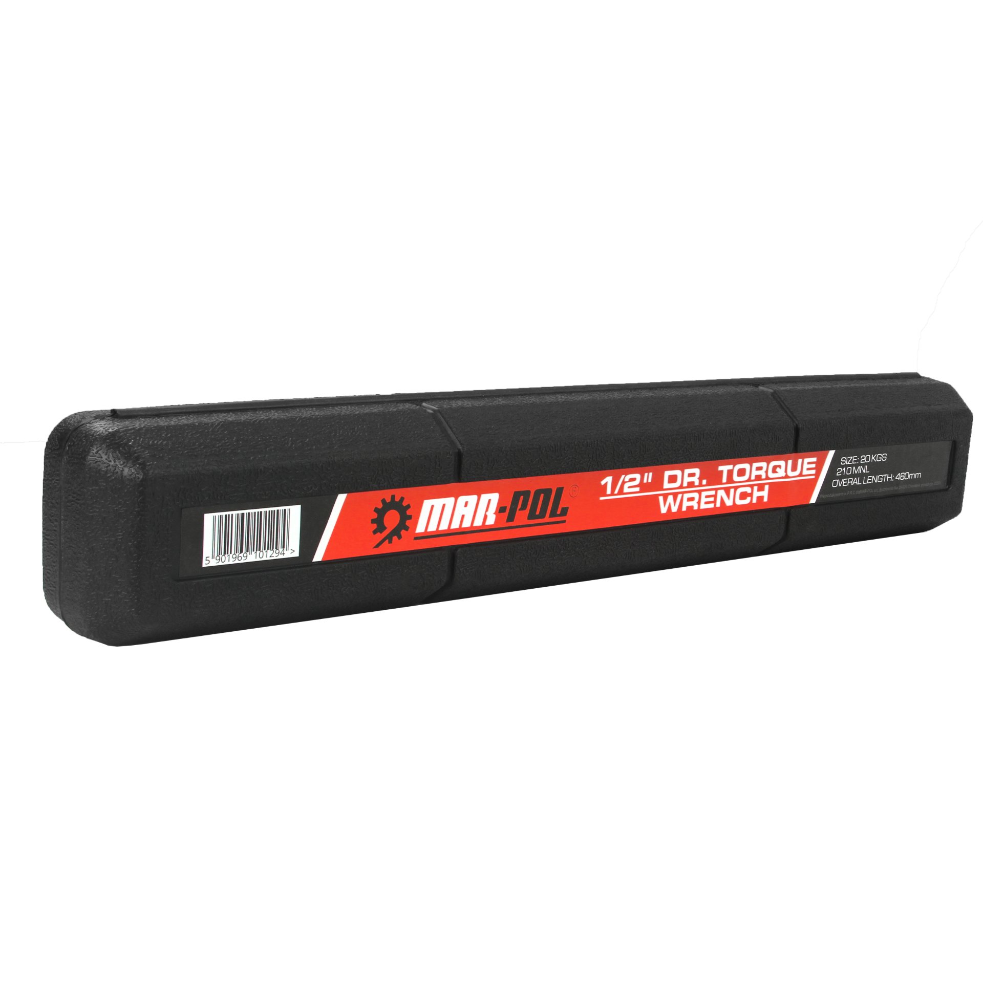 Momentový klíč MAR-POL M53580 s rozsahem 42 - 210 Nm a délkou 467 mm je ideální pro přesné utažení šroubů a matic. Vyrobeno z kvalitní CrV oceli, umožňuje nastavení momentu s přesností 1 Nm. Klíč má otočný přepínač směru práce a je dodáván v plastovém pouzdře.