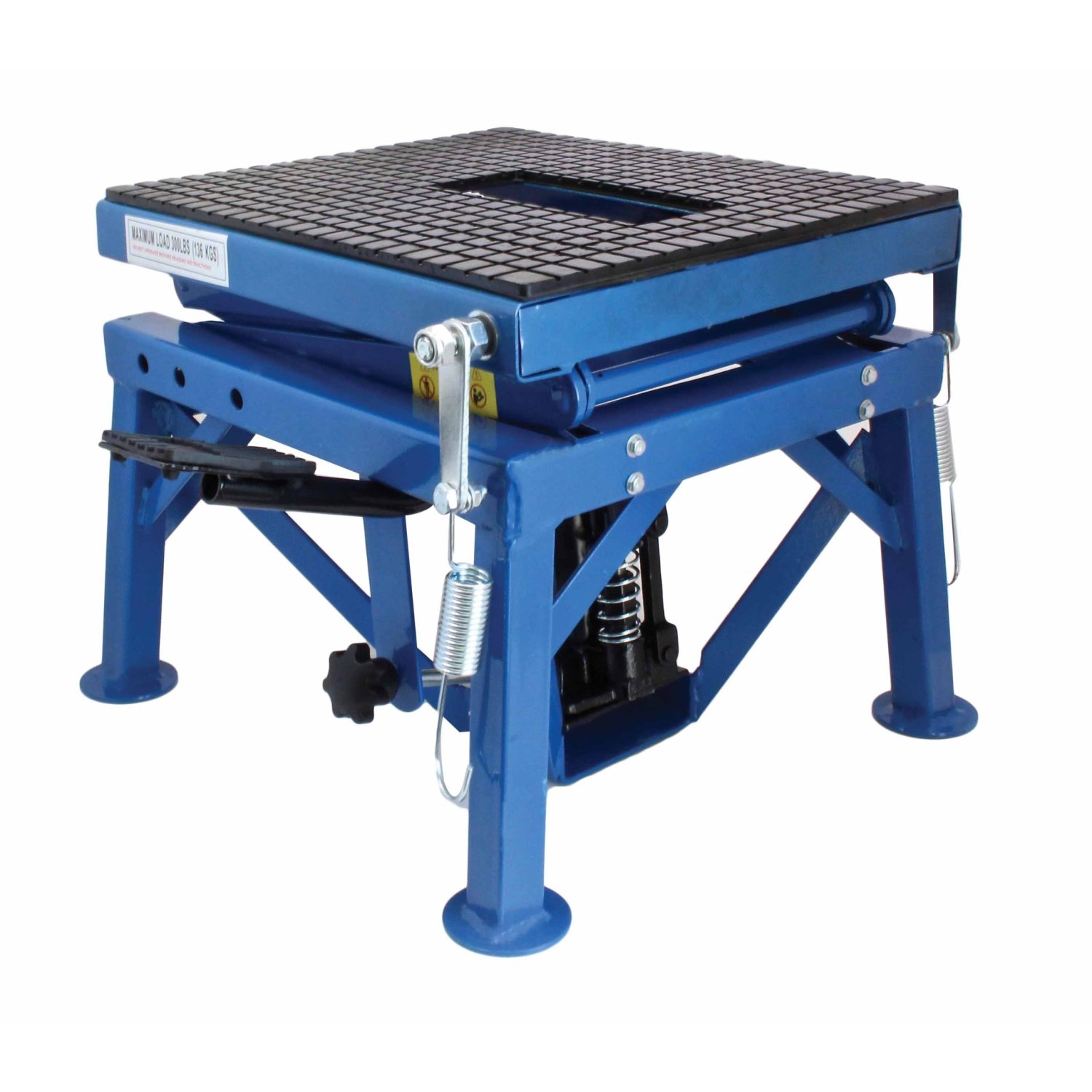 Nůžkový zvedák na motocykly, který je ovládán nožním hydraulickým čerpadlem. Velká plocha plošiny 410 x 350 mm zajišťuje stabilitu zvedaného motocyklu a západky ve 4 polohách umožňují pracovat ve výšce zvolené obsluhou. Díky nízké hmotnosti a kompaktním rozměrům je zvedák vysoce funkční a mobilní.