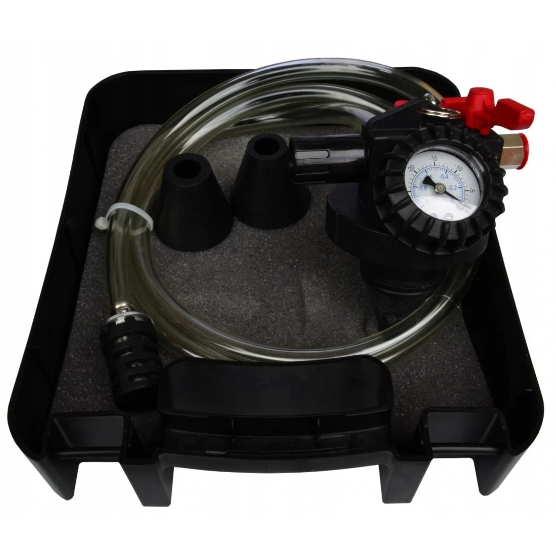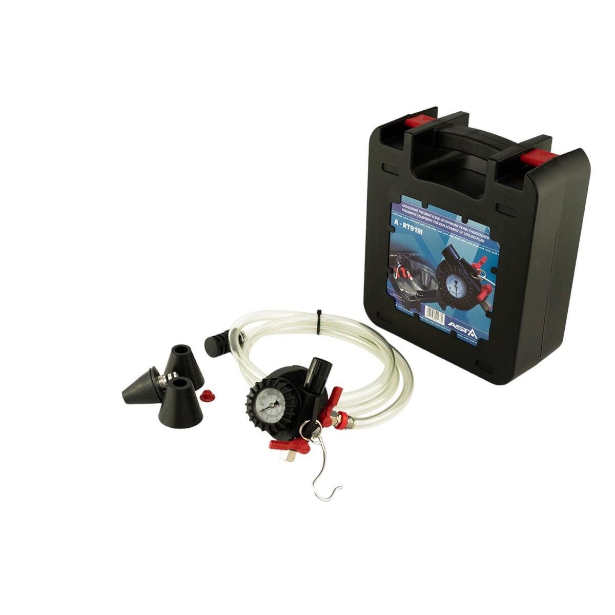 Profesionální pneumatický nástroj pro výměnu chladicí kapaliny pod tlakem bez rizika zavzdušnění systému. Umožňuje rychlé a efektivní naplnění chladicího okruhu při výměně kapaliny v osobních a užitkových vozidlech.
