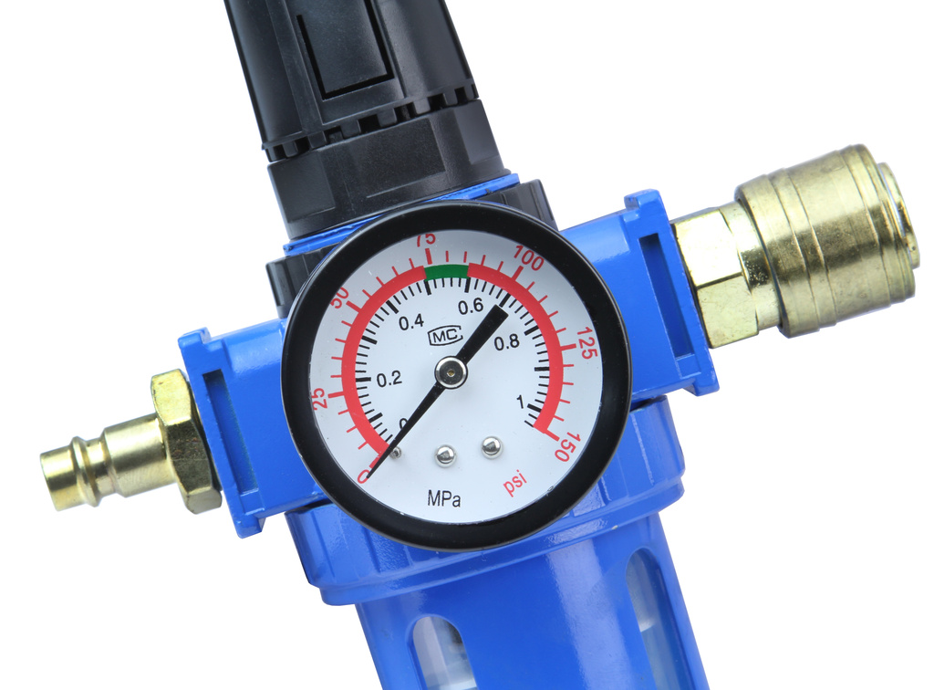 Regulátor tlaku – umožňuje přizpůsobení vzduchu konkrétnímu nástroji