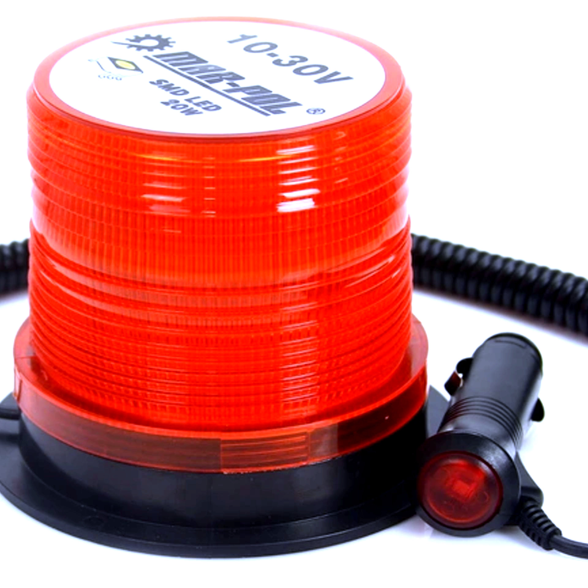 LED maják MAR-POL M82712 – výstražné světlo se 40 LED diodami, magnetickým uchycením a napájením ze zapalovače. Dva režimy svícení (stroboskop, rotace) pro maximální viditelnost a bezpečnost. Univerzální napájení 10 – 30V, ideální pro údržbářská vozidla, zemědělské stroje a nadrozměrnou dopravu.