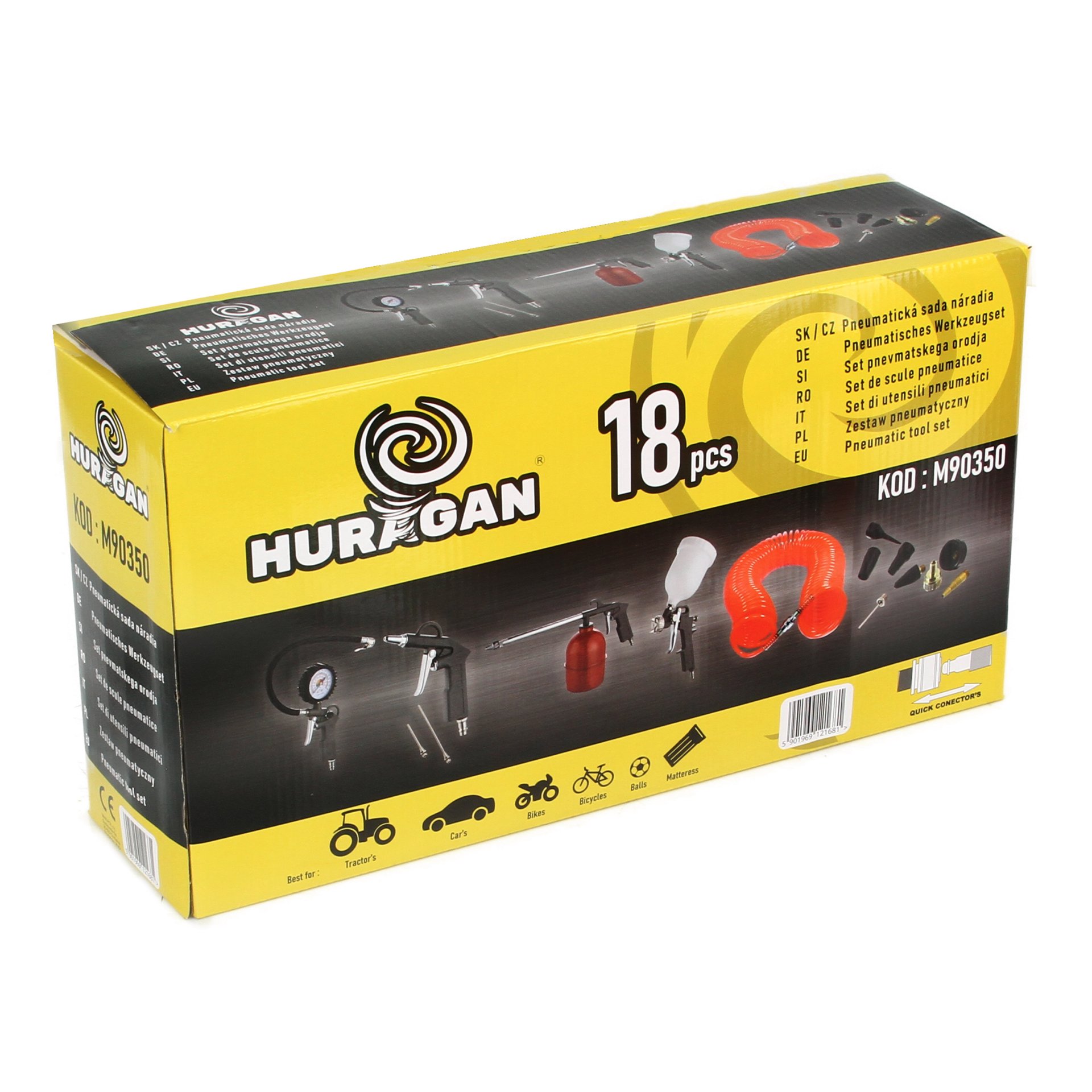 Krátký popis: Pneumatická sada HURAGAN M90350 je praktické řešení pro každého, kdo pracuje s kompresorem. Umožňuje lakování, čištění, ofukování i nadýmání, přičemž poskytuje kvalitní a spolehlivé výsledky.