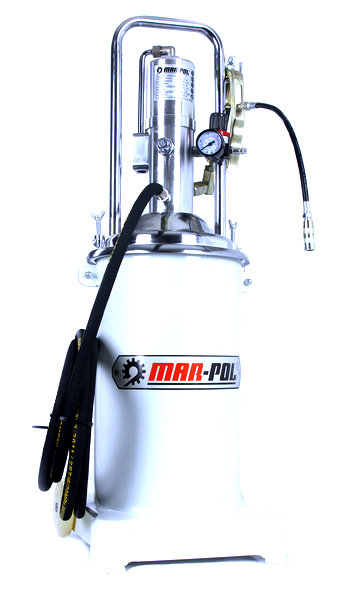 Profesionální mazací lis s pneumatickým pohonem MAR-POL M78060 je určený pro intenzivní mazání strojních zařízení v dílnách, továrnách a průmyslových provozech. Díky velkému zásobníku na 17 litrů plastického maziva a výkonnému čerpadlu je vhodný pro nepřetržité použití i ve velkých provozech. Pojízdná konstrukce umožňuje snadnou manipulaci i v rozsáhlých prostorách.