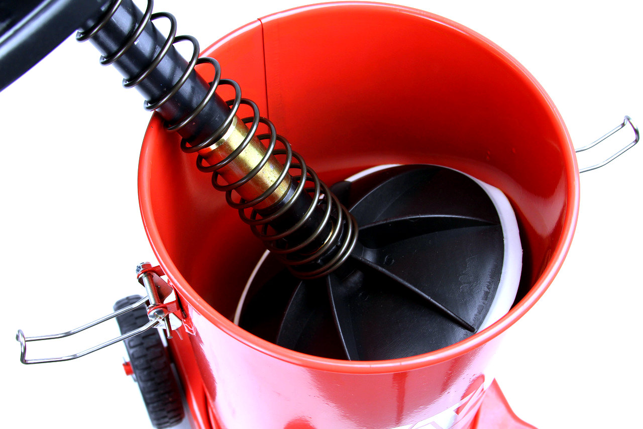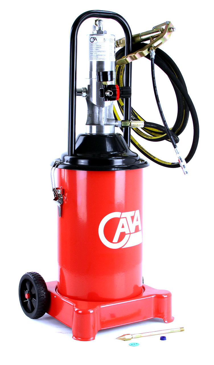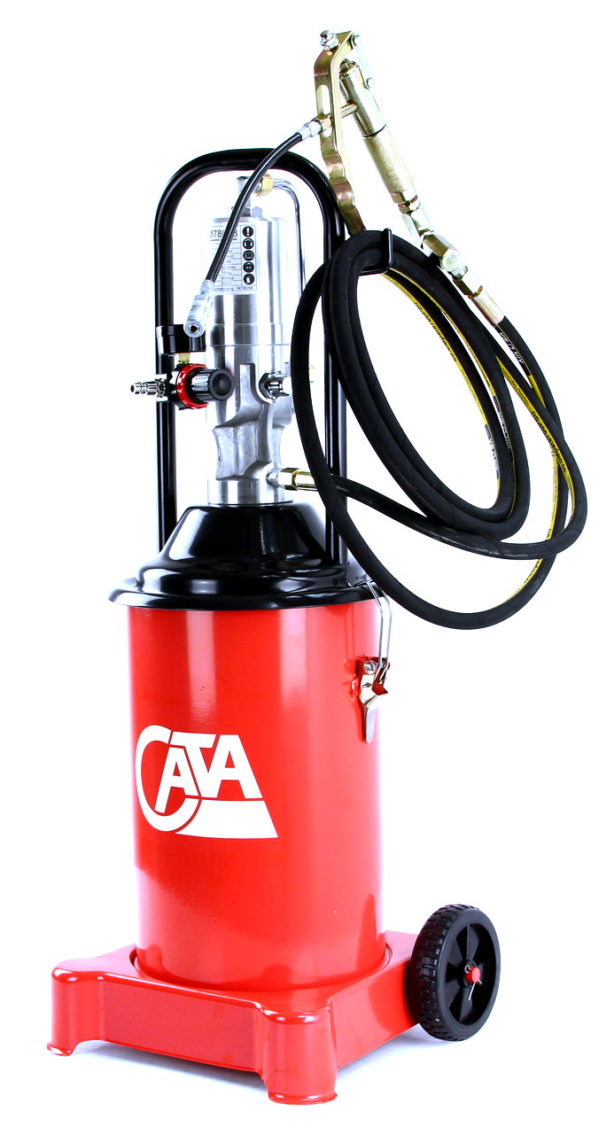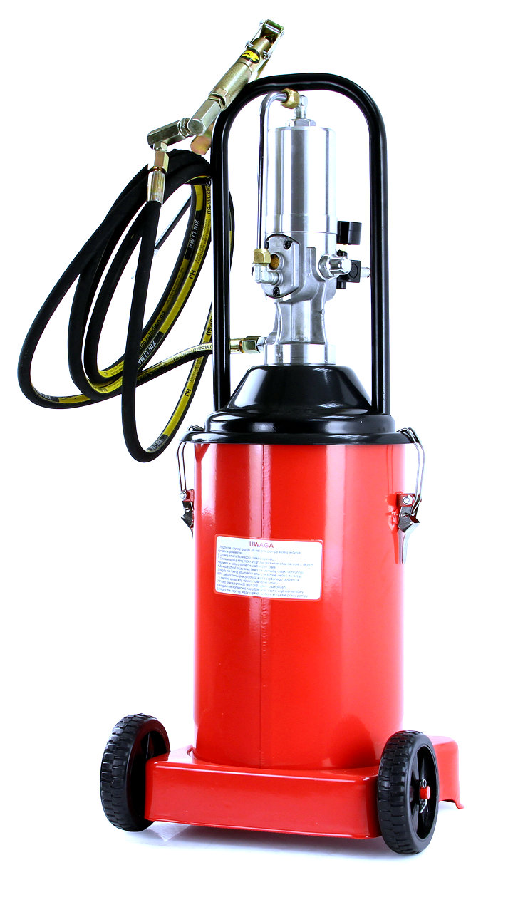 Výkonná profesionální pneumatická maznice s objemem 12 litrů, ideální pro intenzivní mazání strojů a zařízení s mazacími body (kalamitkami). Díky transportním kolečkům, dlouhé hadici a otočné pistoli je práce rychlá, efektivní a pohodlná.