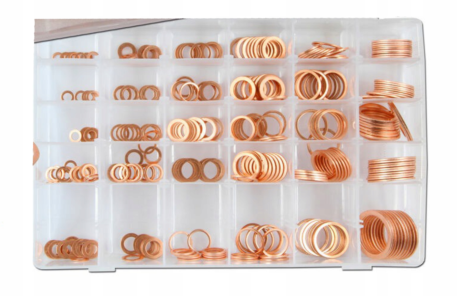 Tato sada obsahuje 300 kusů měděných těsnicích podložek v různých velikostech, které jsou určeny pro utěsnění a vyrovnání spojů v mechanických a hydraulických systémech. Podložky jsou vyrobeny z kvalitní mědi, což zajišťuje vysokou odolnost vůči teplu, tlaku a korozi.