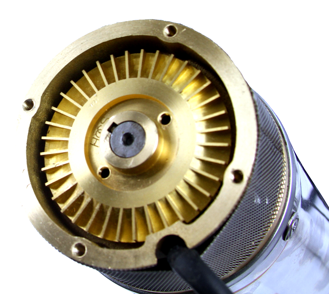 ✅ Tělo a lopatky z mosazi, motor s měděným vinutím