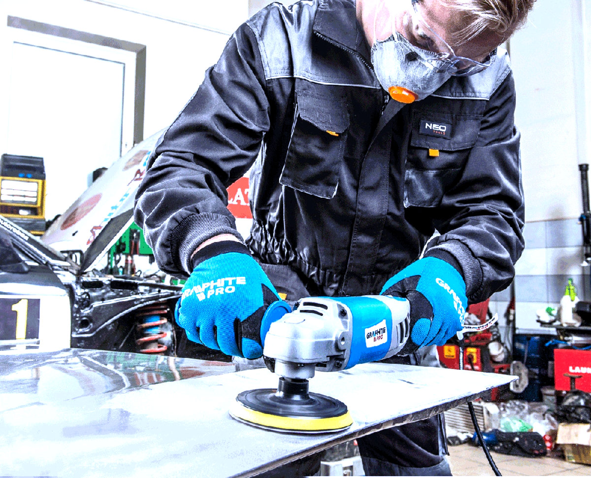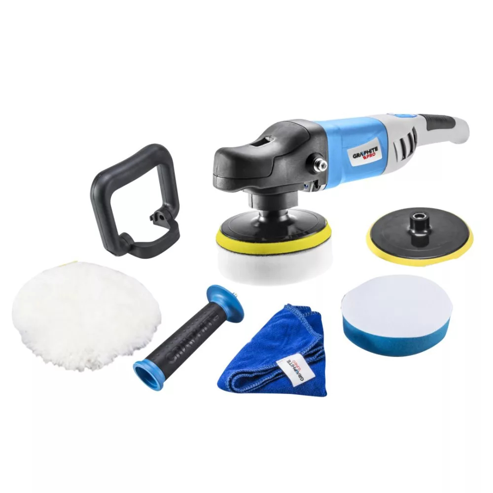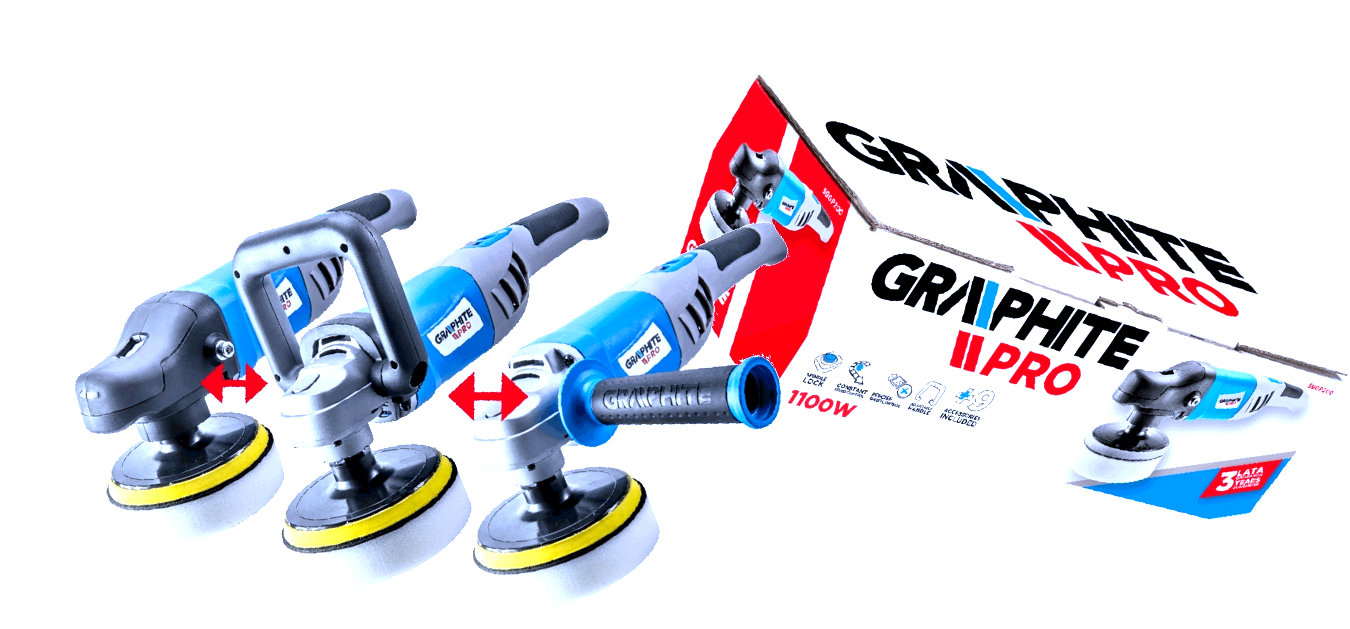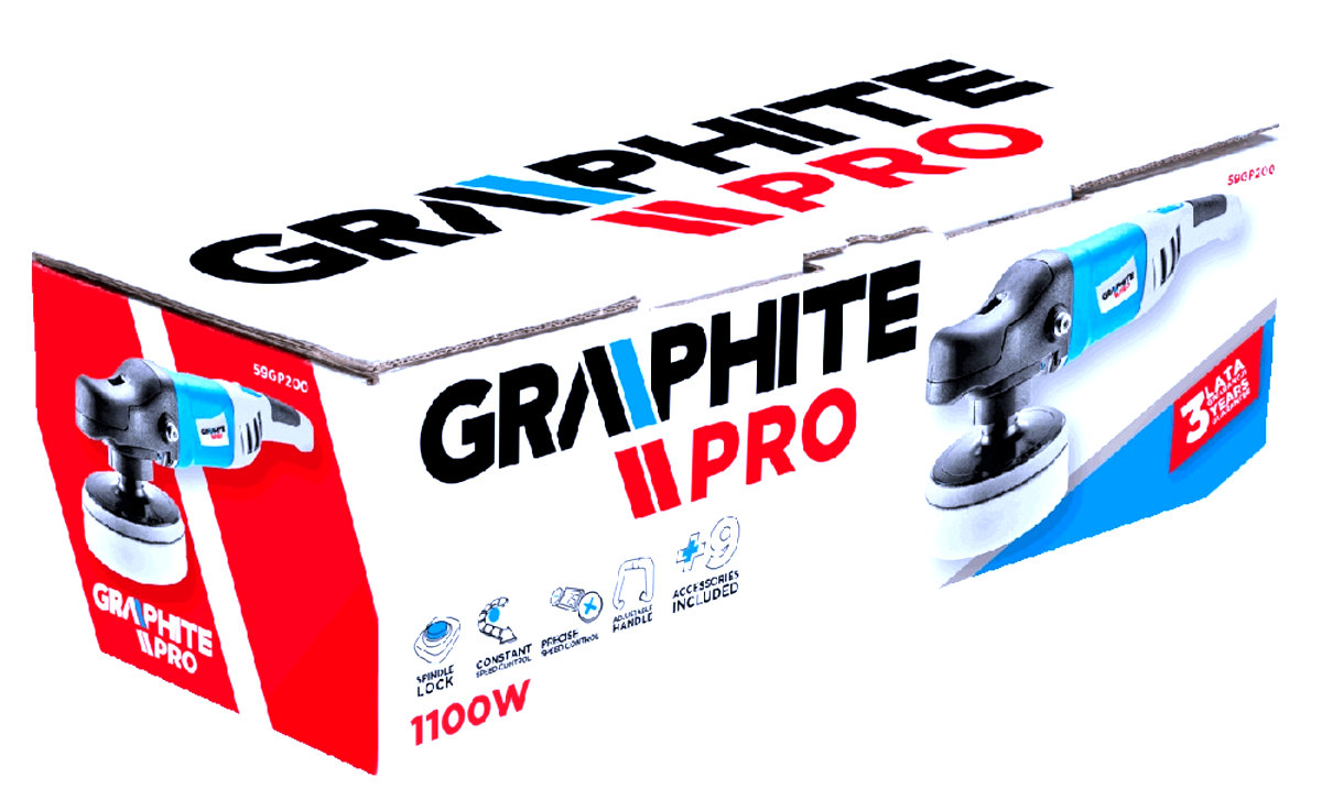 Profesionální leštící bruska GRAPHITE 59GP200 (1100 W) – ideální pro karosářské, lakýrnické a renovační práce. Nastavitelná rychlost 1000 – 3000 ot./min, uchycení M14, bohaté příslušenství. Perfektní pro broušení a leštění vozidel, dřeva či kovů!