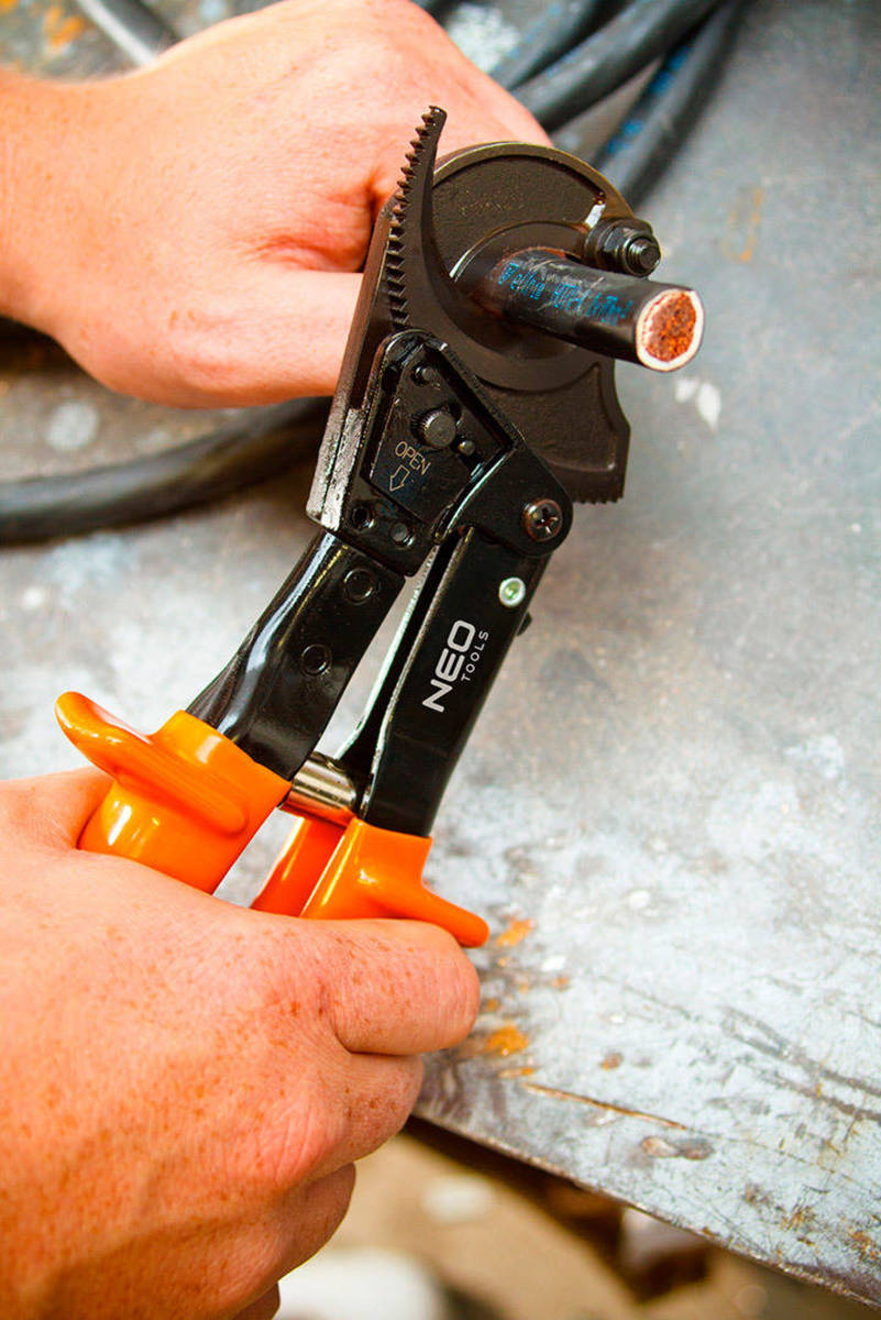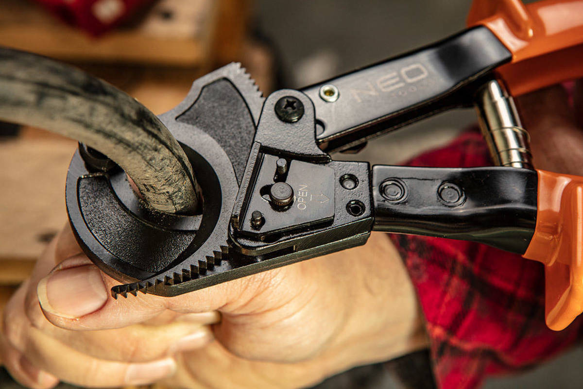 🛠 Ráčnové nůžky NEO 01-516 – profesionální střihání měděných a hliníkových kabelů