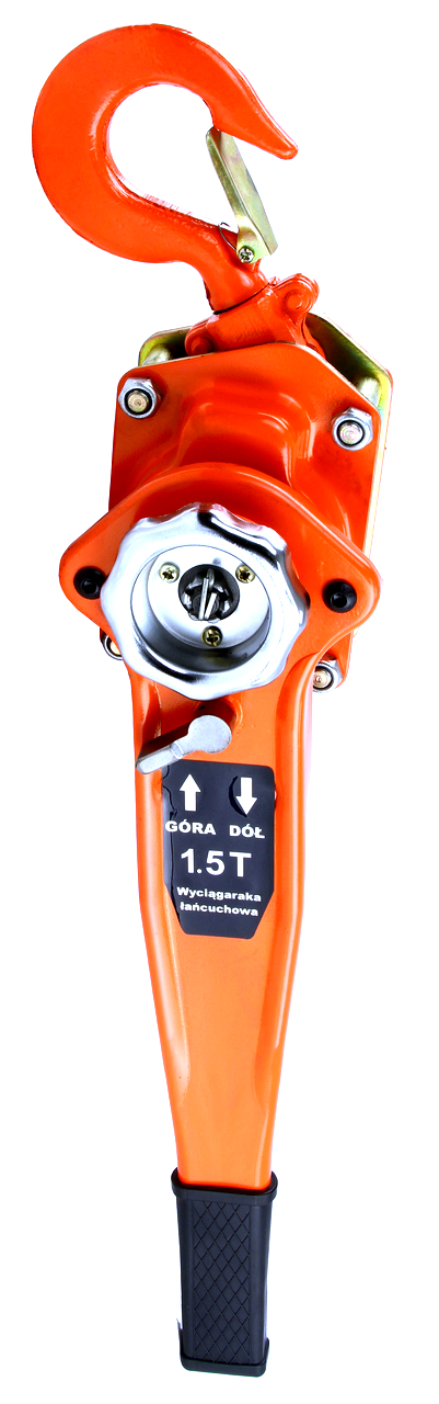 Výkonný ruční naviják s ráčnovým mechanismem pro zvedání a spouštění břemen do 1500 kg. Ergonomická pogumovaná páka umožňuje pohodlnou manipulaci jednou rukou – lze ji otáčet i o 360°. Směr tahu se jednoduše mění přepínačem. Samoblokovací mechanismus okamžitě zastaví řetěz po uvolnění páky a zabrání nechtěnému pohybu nákladu.
