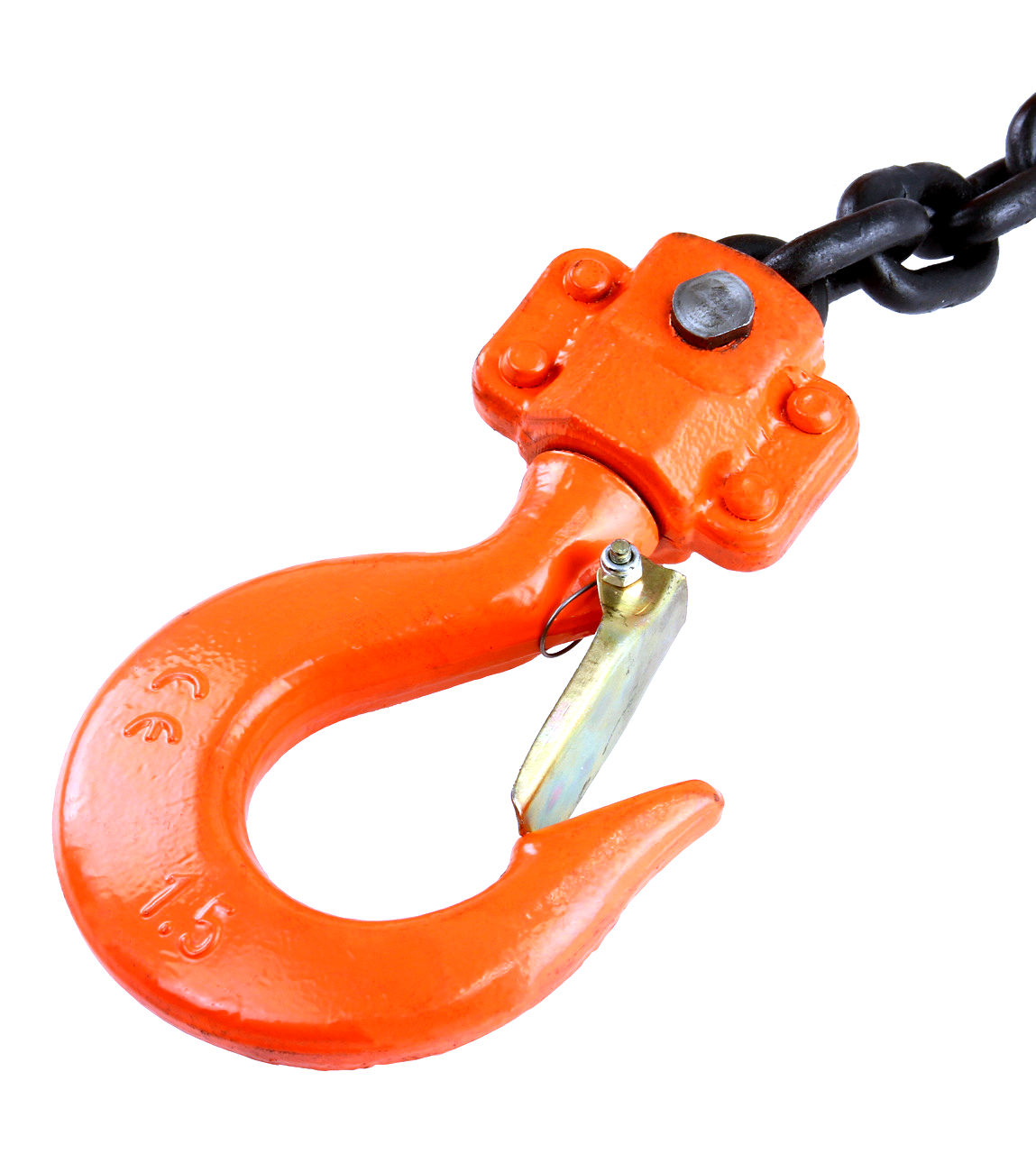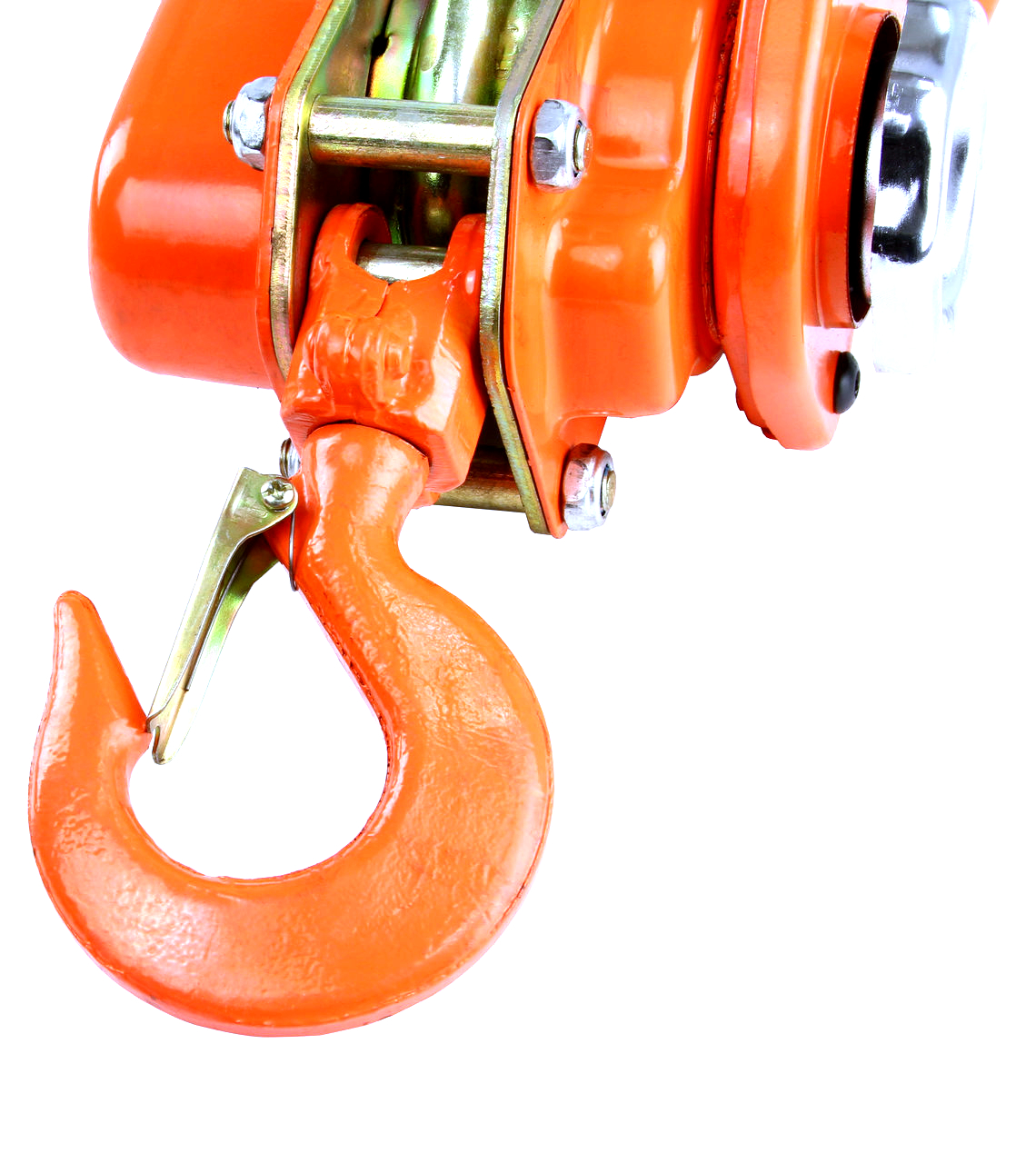 Naviják je vybaven dvěma ocelovými háky se samosvornou pojistkou – jeden pro uchycení břemene, druhý pro zavěšení zařízení. Kvalitní ocelový řetěz o tloušťce 8 mm a délce 3 m zaručuje dlouhou životnost a bezpečnou práci.