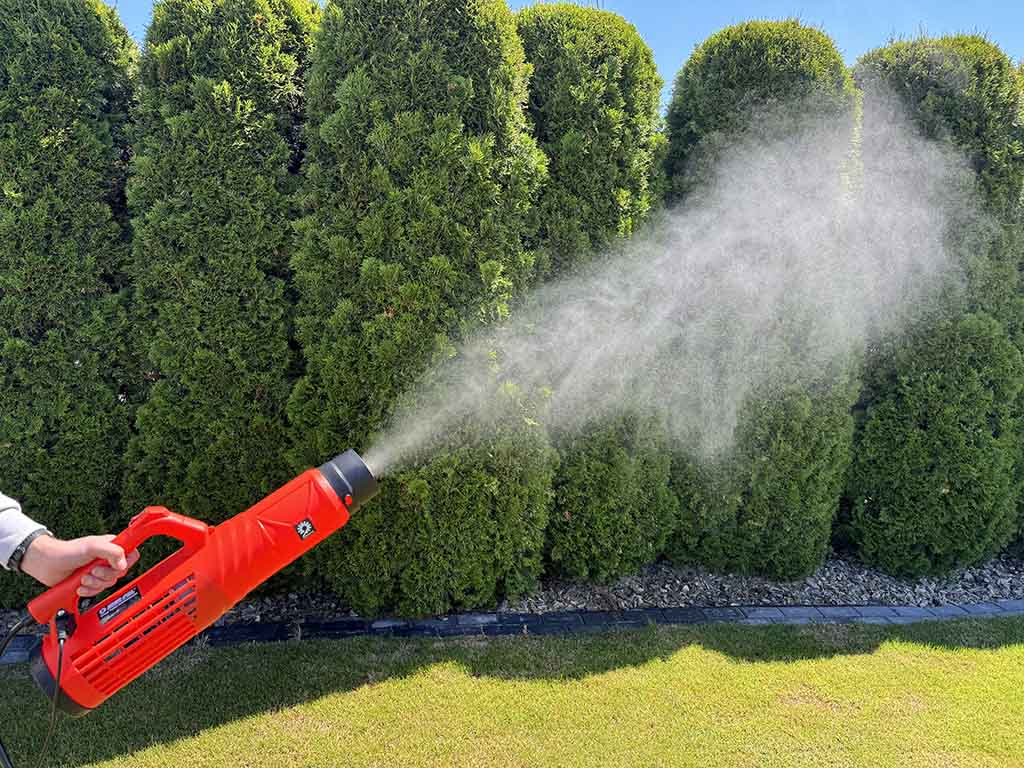 Výkonná turbo tryska s možností regulace rozptylu proudu umožňuje snadno přepínat mezi jemnou mlhou a silným proudem – podobně jako u profesionálních spalovacích postřikovačů. Tryska je určena k připojení na postřikovače nebo externí akumulátor, čímž získáš praktický elektrický rozprašovač s širokým uplatněním. Hadice se jednoduše našroubuje na výstup trysky a zařízení je okamžitě připraveno k provozu. Vhodné pro postřik rostlin, čištění povrchů, chladicí účely i použití jako fukar.