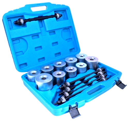 Komplexní sada přípravků pro rychlou a efektivní práci přímo na vozidle nebo pro použití ve standardním dílenském lisu.