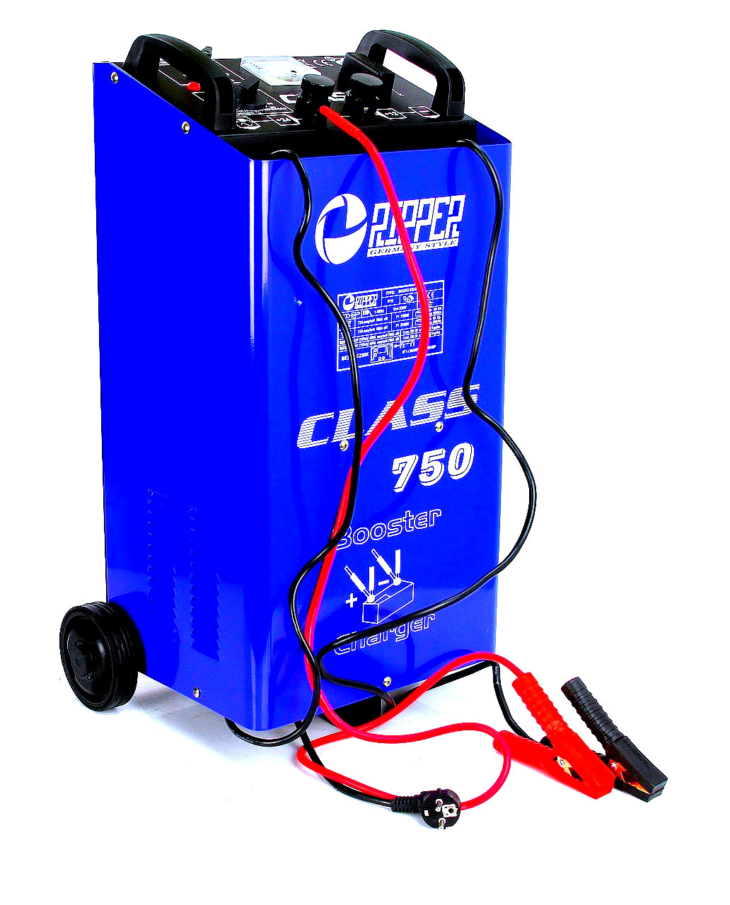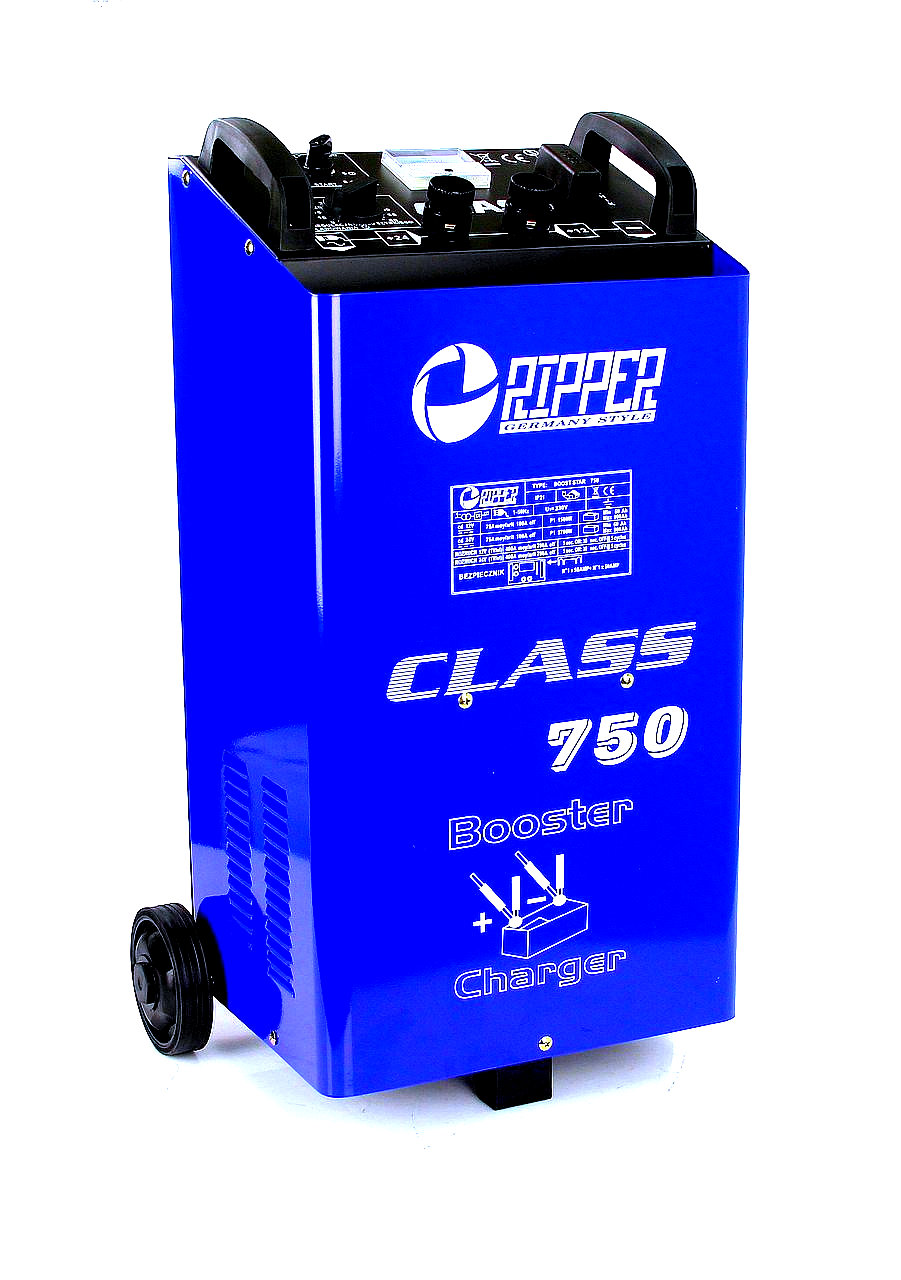 Startovací vozík RIPPER CLASS 750 je profesionální zařízení určené ke startování vozidel, jako jsou osobní a nákladní auta či stavební stroje se zcela vybitým akumulátorem. Kromě startování slouží také k nabíjení olověných akumulátorů s napětím 12 V nebo 24 V a kapacitou v rozsahu 60 – 900 Ah. Tento startovací vozík je ideálním pomocníkem v autoservisech, dílnách a na stavbách.