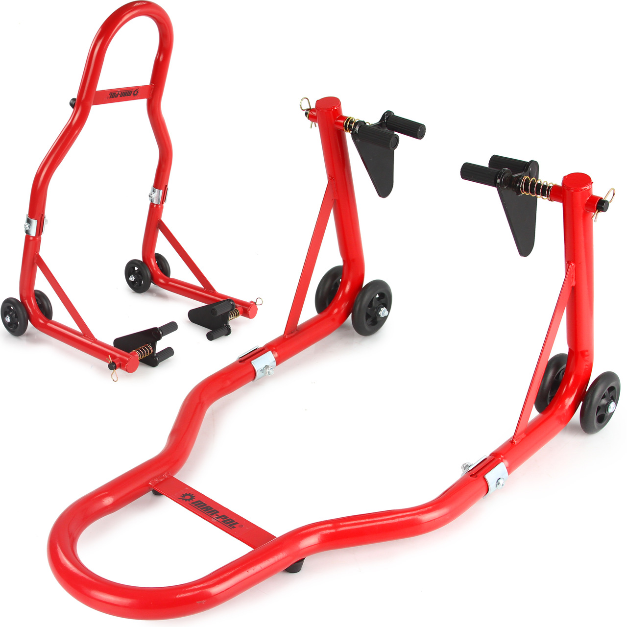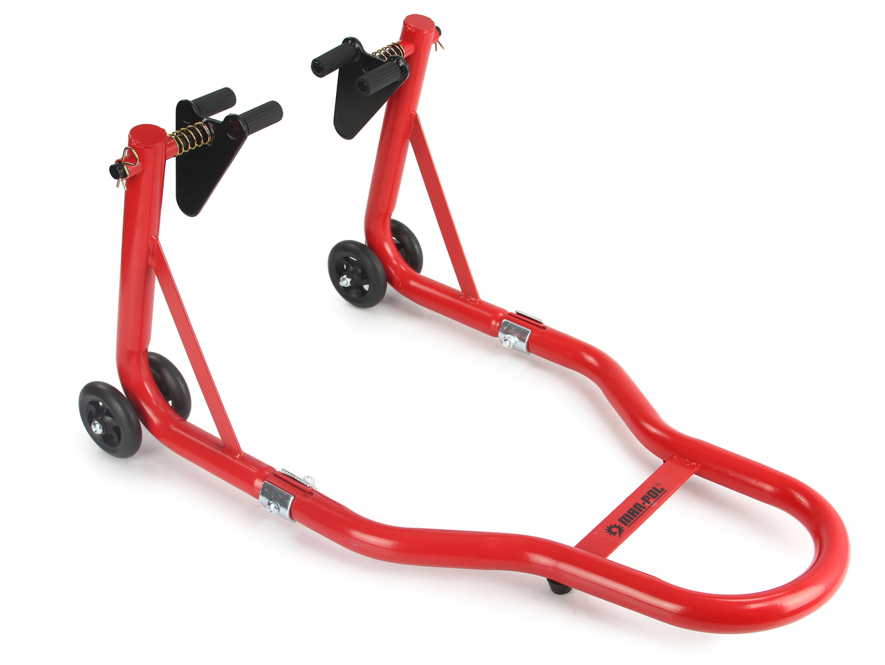 Robustní motocyklový stojan MAR-POL M80176 s nosností 280 kg, vyrobený z ocelových trubek o průměru 32 mm, je ideální pro zvedání přední části motocyklu během servisu, čištění nebo zazimování.