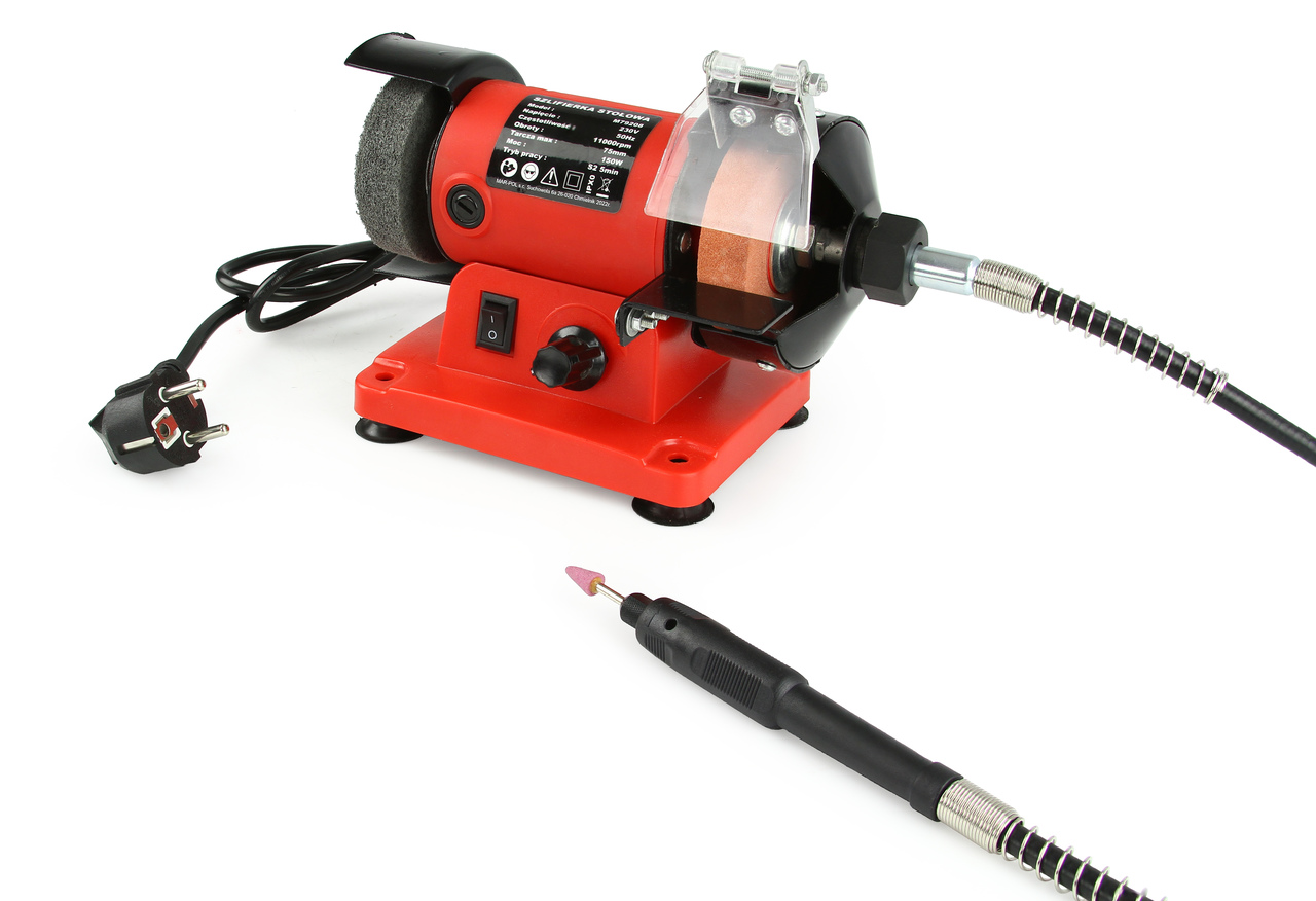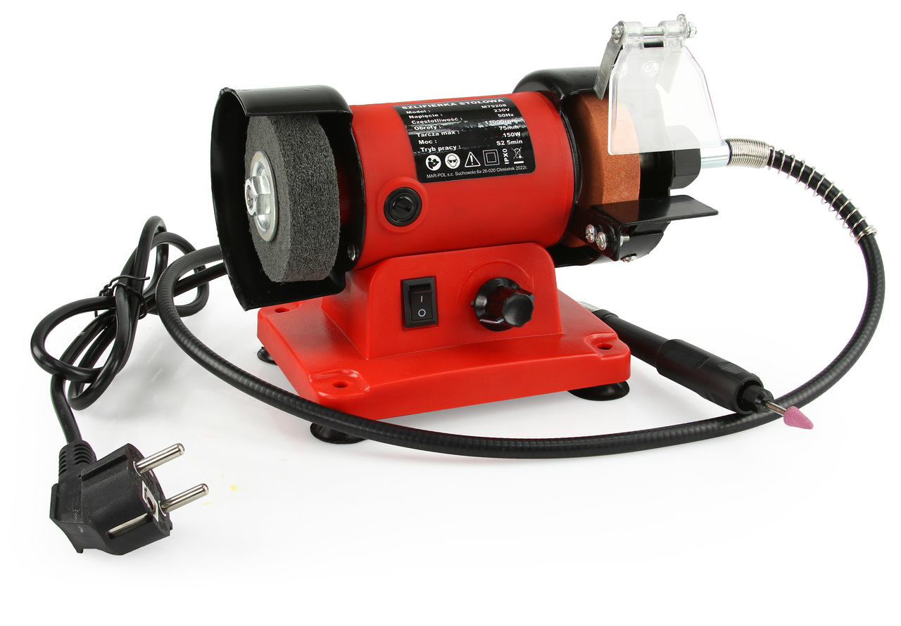 Elektrická stolní bruska MAR-POL M79208 o příkonu 150 W je univerzální nářadí určené k broušení, ostření a leštění kovových i nekovových materiálů. Vybavena dvěma brusnými kotouči a pružnou pásovou hadicí, umožňuje precizní opracování obrobků. Díky kompaktním rozměrům, ergonomickému designu a protiskluzovým nožičkám je ideální do dílny i domácnosti.