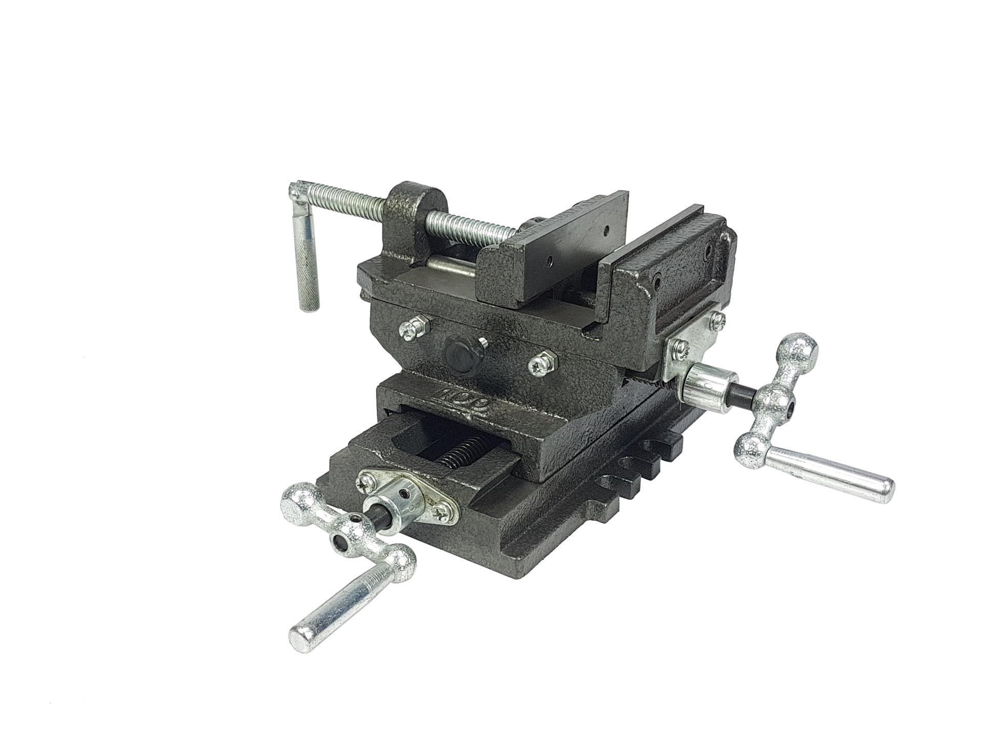 Speciální svěrák určený pro přesnou práci na frézách a sloupových vrtačkách. Umožňuje dvojitý posuv čelistí – příčný i podélný – pro maximální přesnost a flexibilitu při obrábění různých materiálů.