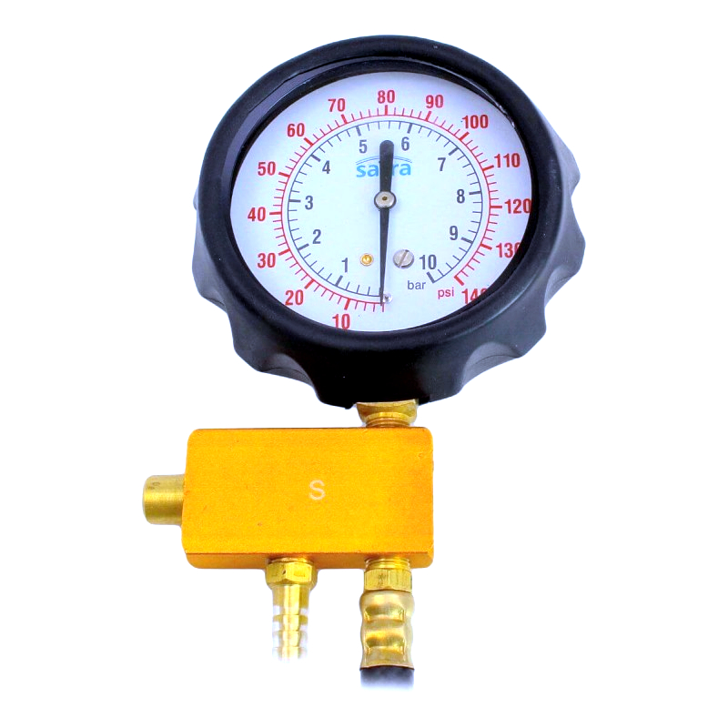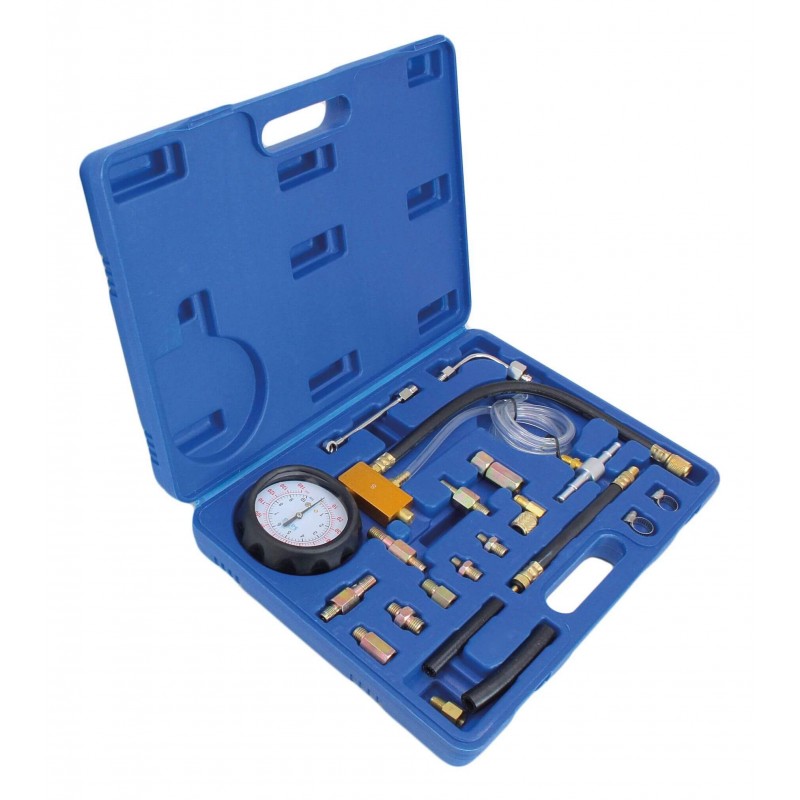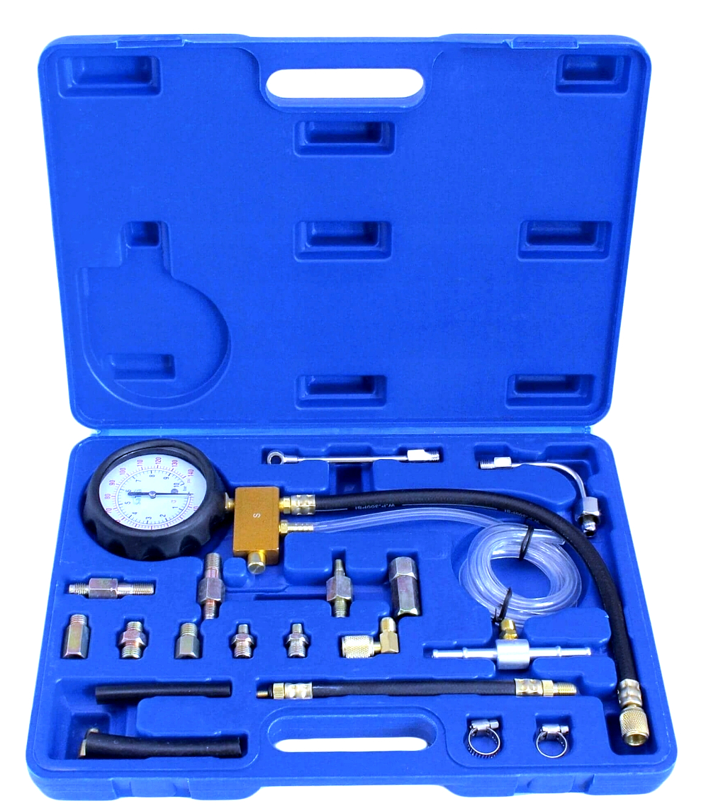Profesionální tester tlaku paliva pro benzinové motory určený ke kontrole účinnosti palivového čerpadla, detekci ucpaného potrubí a měření tlaku v palivové soustavě Kompatibilní s většinou vstřikovacích systémů včetně Bosch CIS Jetronic.