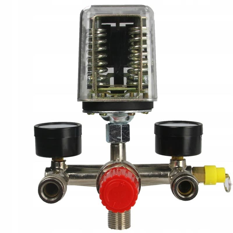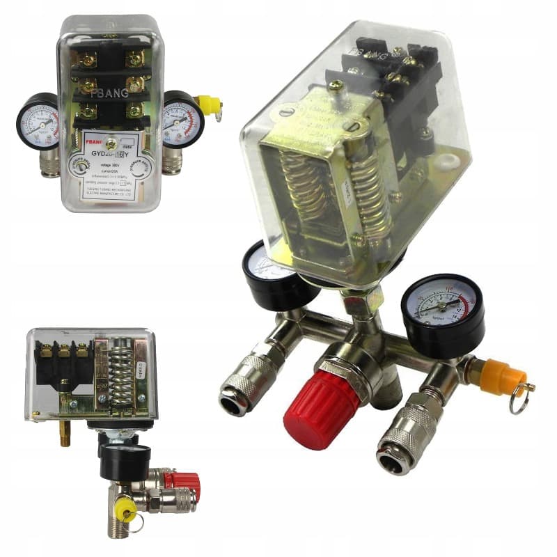 Tlakový spínač pro kompresor 400 V 3 fázový. Tlakový spínač na kompresor s regulátorem tlaku včetně dvou vstupů pro pneumatické nářadí.