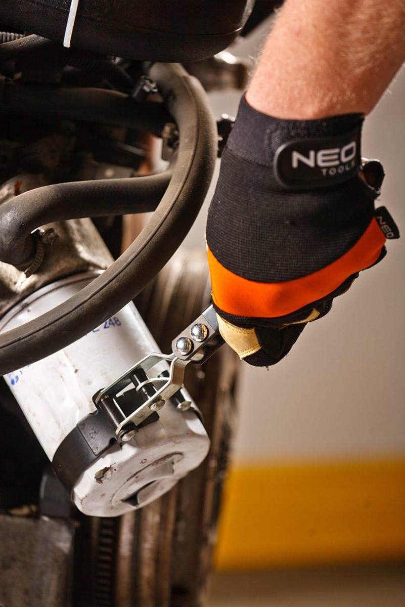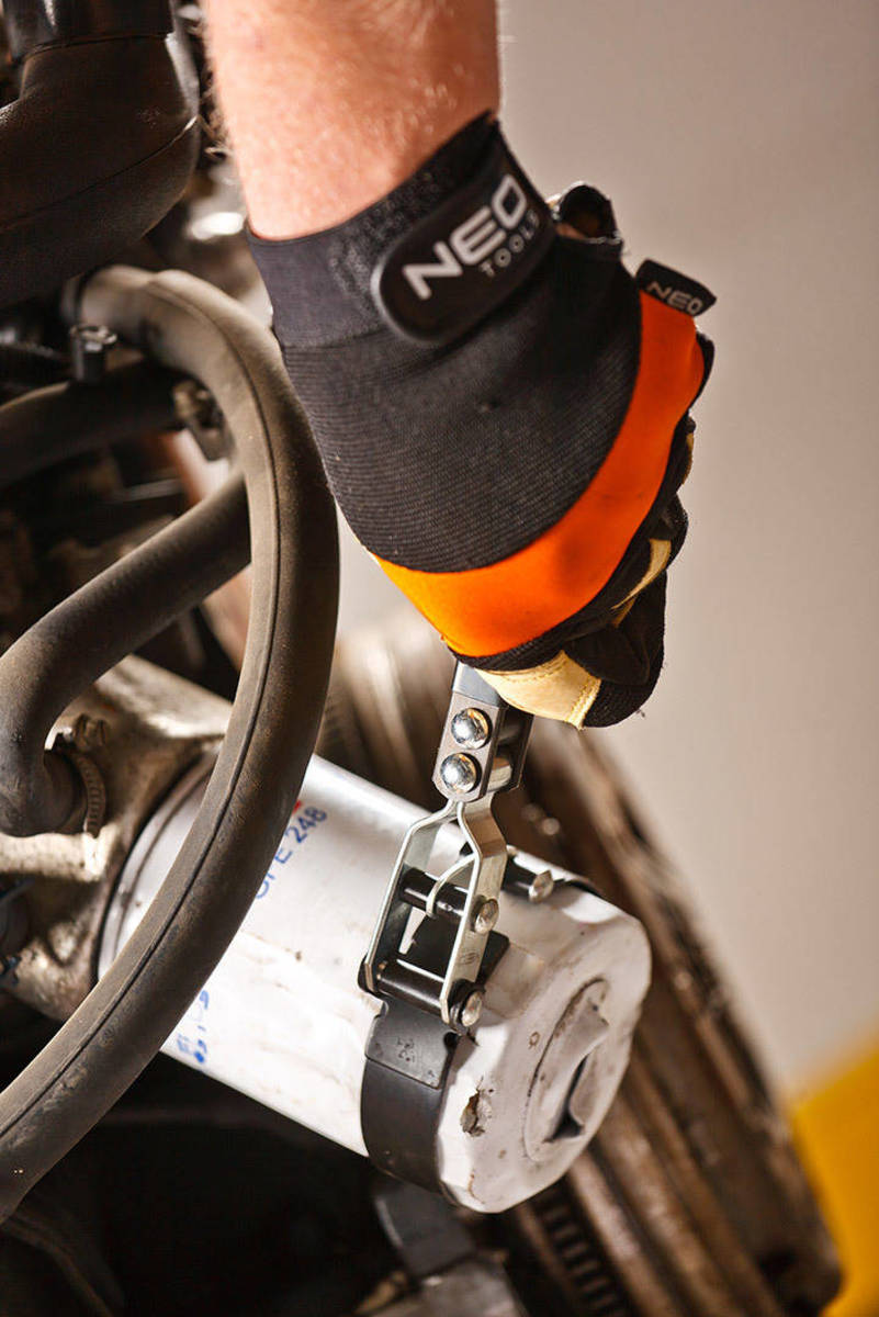 Klíč na olejové filtry 73-85 mm NEO Tools 11-231 - Profesionální nástroj pro snadnou a rychlou demontáž olejových filtrů o průměru 73 - 85 mm. Vybaven automatickým zámkem pro bezpečné uchycení.