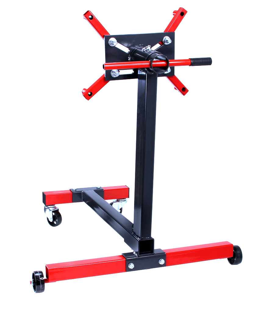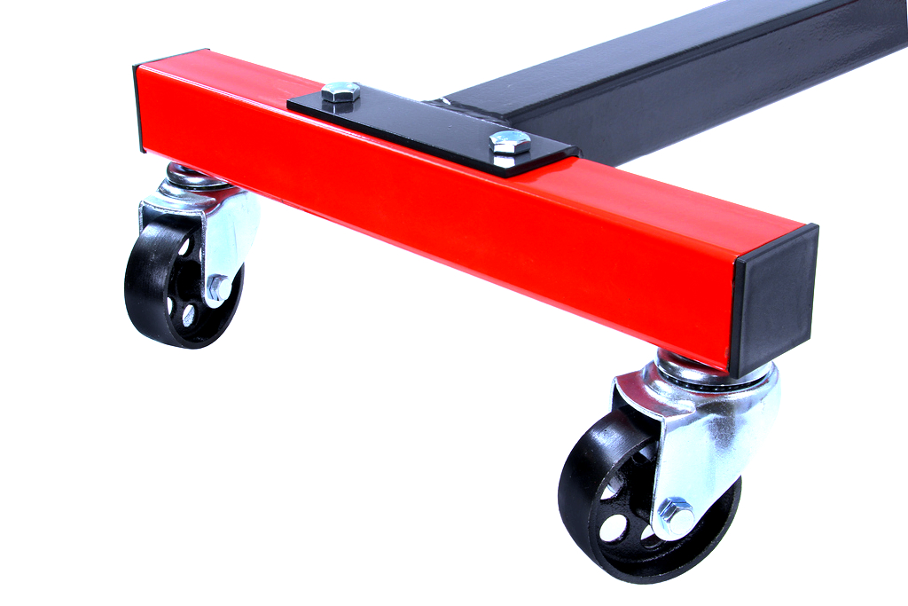 Konstrukce z kvalitní oceli je pevná a odolná. Díky dvěma pevným a dvěma otočným kolečkům je vozík velmi dobře ovladatelný i v omezeném prostoru dílny nebo garáže. Nastavitelný držák motoru umožňuje kompatibilitu s většinou běžných motorů osobních automobilů.