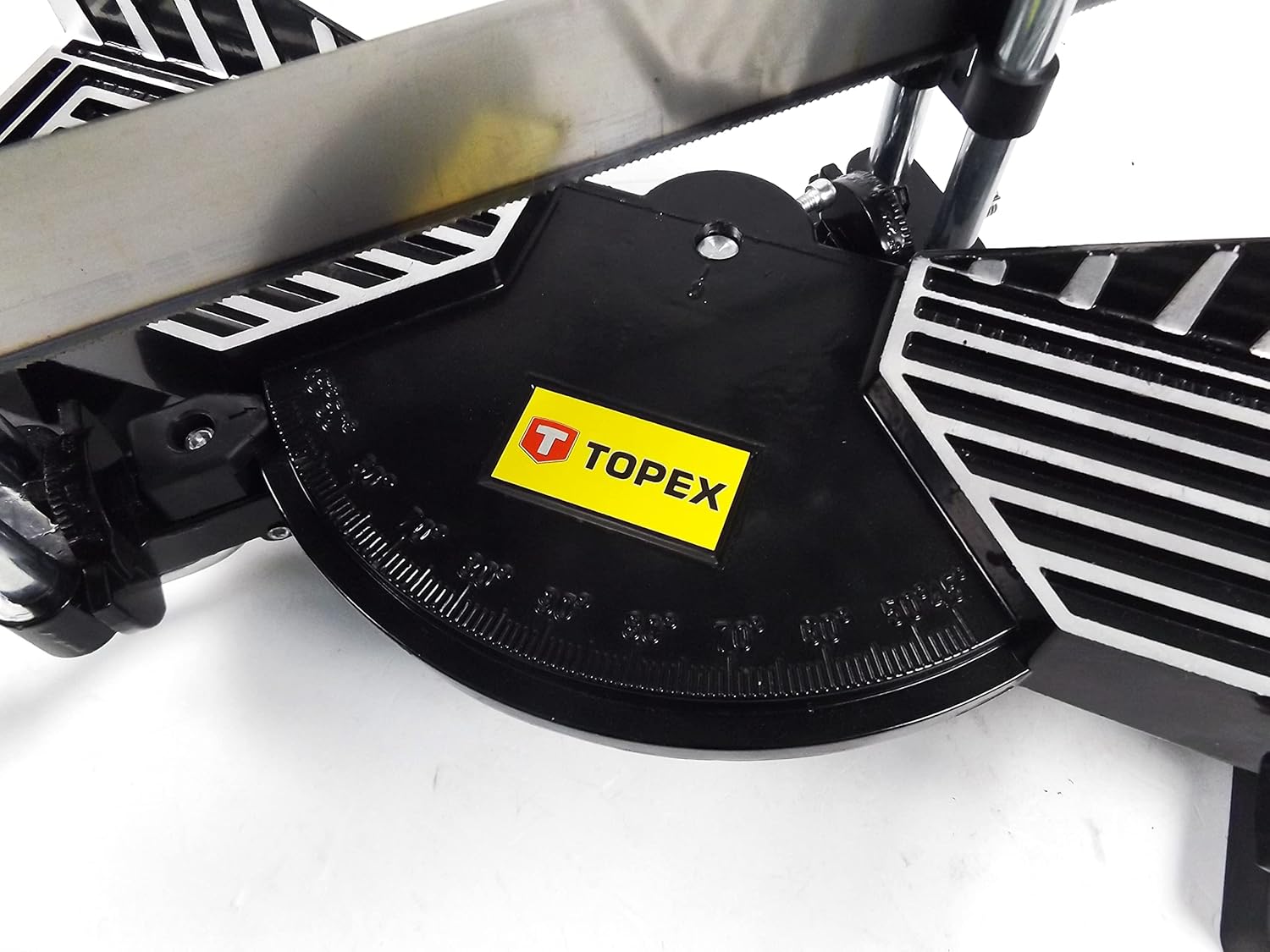 Pokosová pila TOPEX (ref. 10A055) s délkou čepele 550 mm. Určeno k řezání pod úhlem od 45° do 135°. Vyrobeno z hliníku, díky čemuž je snadné a pohodlné na používání.