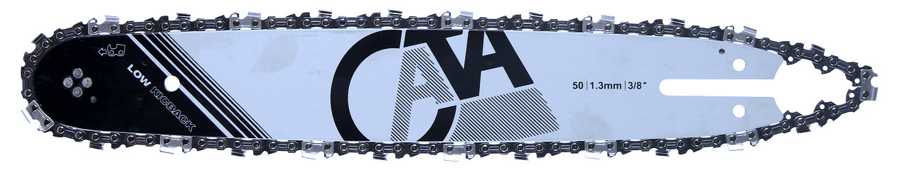 Sada vodicí lišty a dvou řetězů na motorovou pilu 14″ (35 cm), 50 článků, rozteč 3/8″, tloušťka i šířka zubu 1,3 mm. Kompatibilní s pilami Demon, Stihl, Alpina, Elletra, Energy, Sinergy a Oleo-Mac.