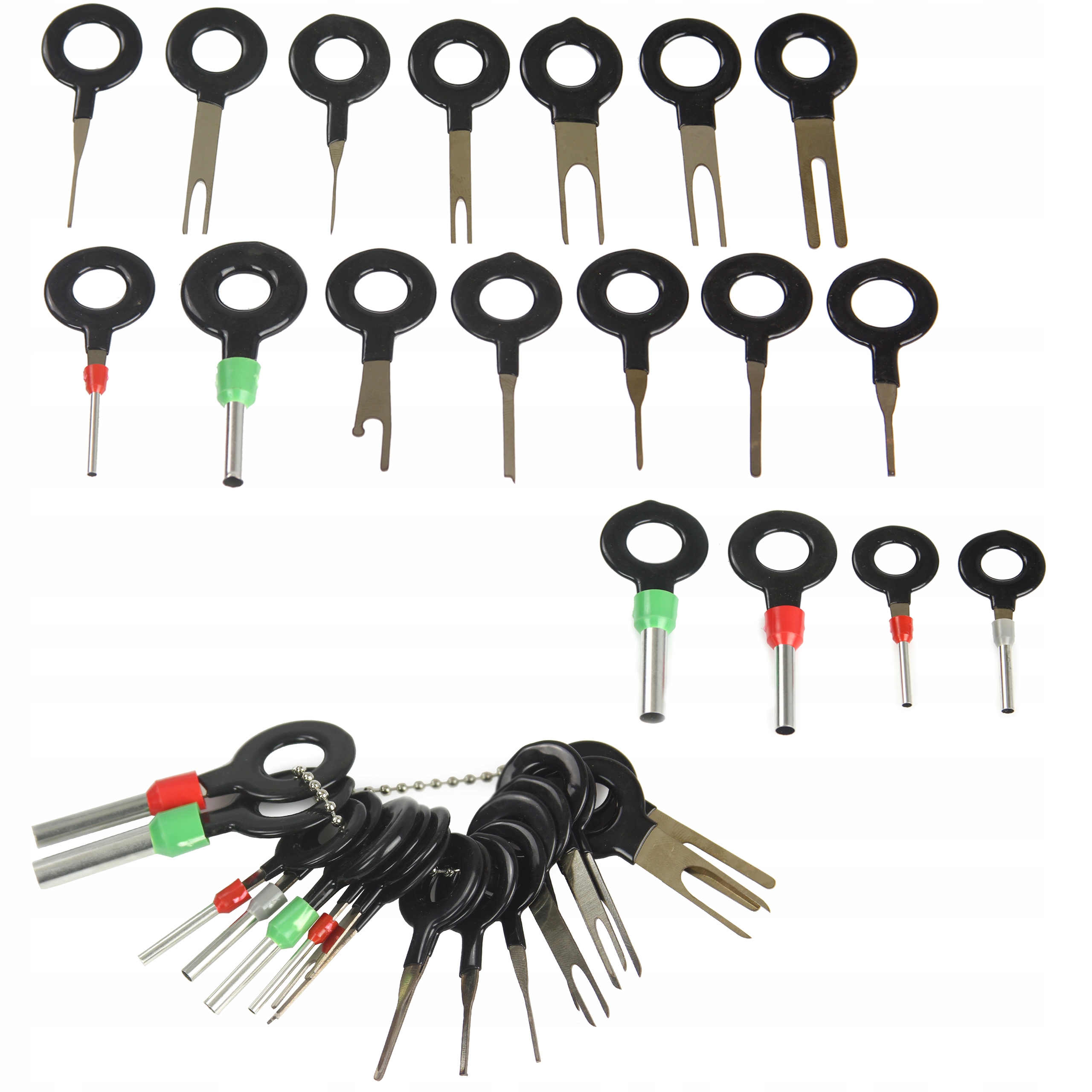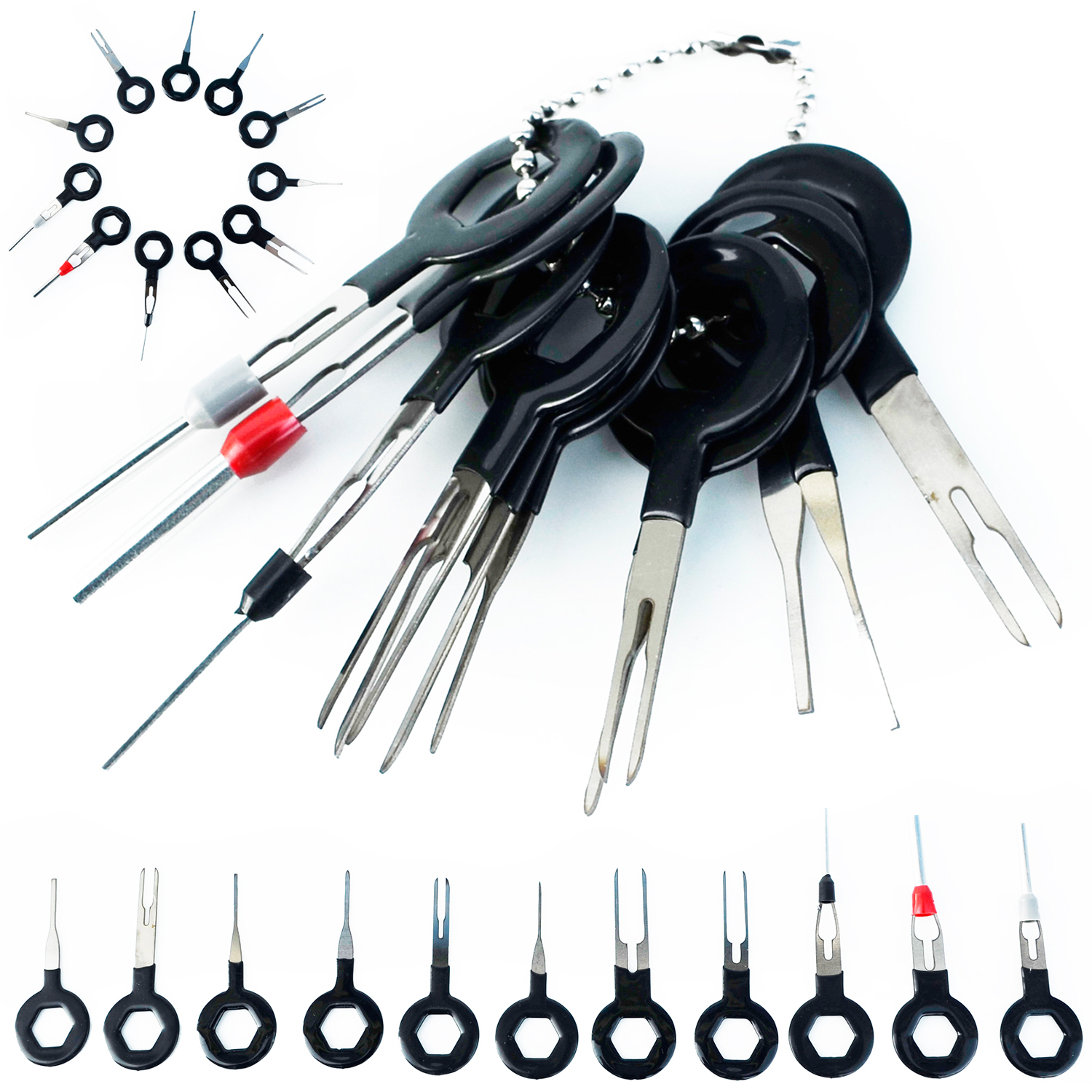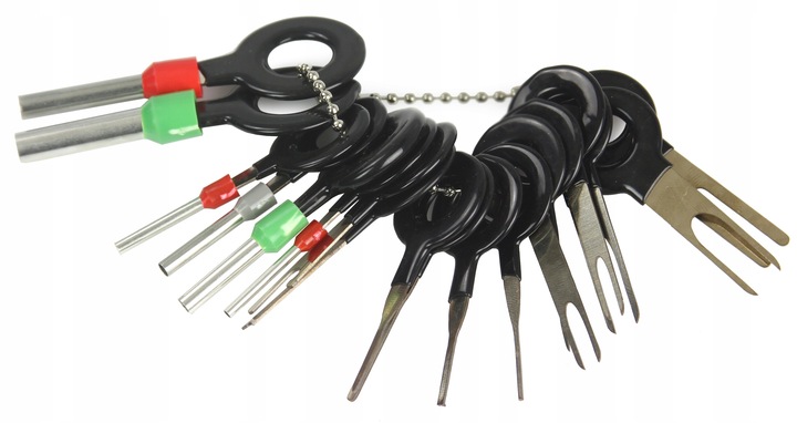 Vypichováky pinů autokonektorů 18dílná sada MAR-POL M57467 – Profesionální sada nástrojů pro bezpečné odstranění pinů a konektorů ze svorek a elektrických konektorů. Vhodné pro auta, motocykly, lodě a elektronická zařízení. Obsahuje 18 různých vypichováků a ergonomickou rukojeť pro pohodlnou manipulaci.